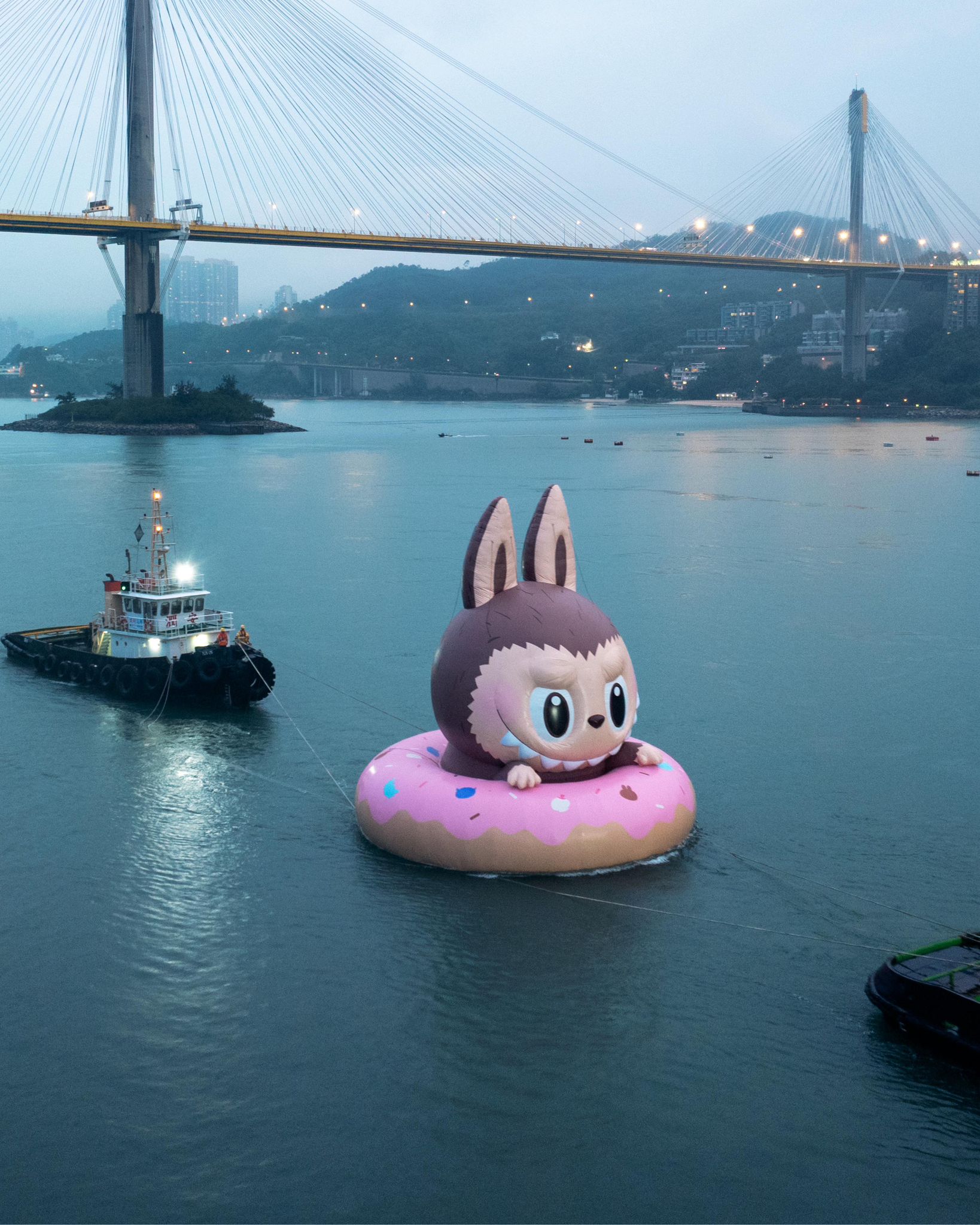 四座巨型海上充氣雕塑包括日本家傳戶曉的角色多啦 A 夢;美國當代藝術家 KAWS 聯乘芝麻街,以全新姿態 KAWS & 芝麻街(Elmo)回歸香港;麥當勞人氣王滑嘟嘟,以及香港藝術家龍家昇筆下的 LABUBU。巨型海上充氣雕塑巡遊將率先於 10 月 25 日起在金鐘添馬公園對開海域公開展示,並於 11 月 1 日啟航,為維港帶來前所未有的壯觀景象。