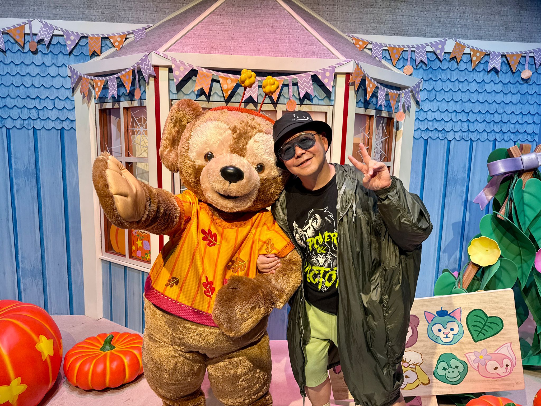 Duffy 與好友遊玩屋的小天地充滿萌趣,屋內更布滿萬聖裝,佢哋齊齊換上趣怪的萬聖新裝,等大家前來一起合照。換上萬聖節派對服裝的米奇老鼠、米妮老鼠、唐老鴨、黛絲、高飛、布魯托及鋼牙奇奇與大鼻帝帝亦將於美國小鎮大街上,期待與賓客見面;而小熊維尼、跳跳虎與咿唷也會在夢想花園準備與大家來個熊抱,鬼馬合照。