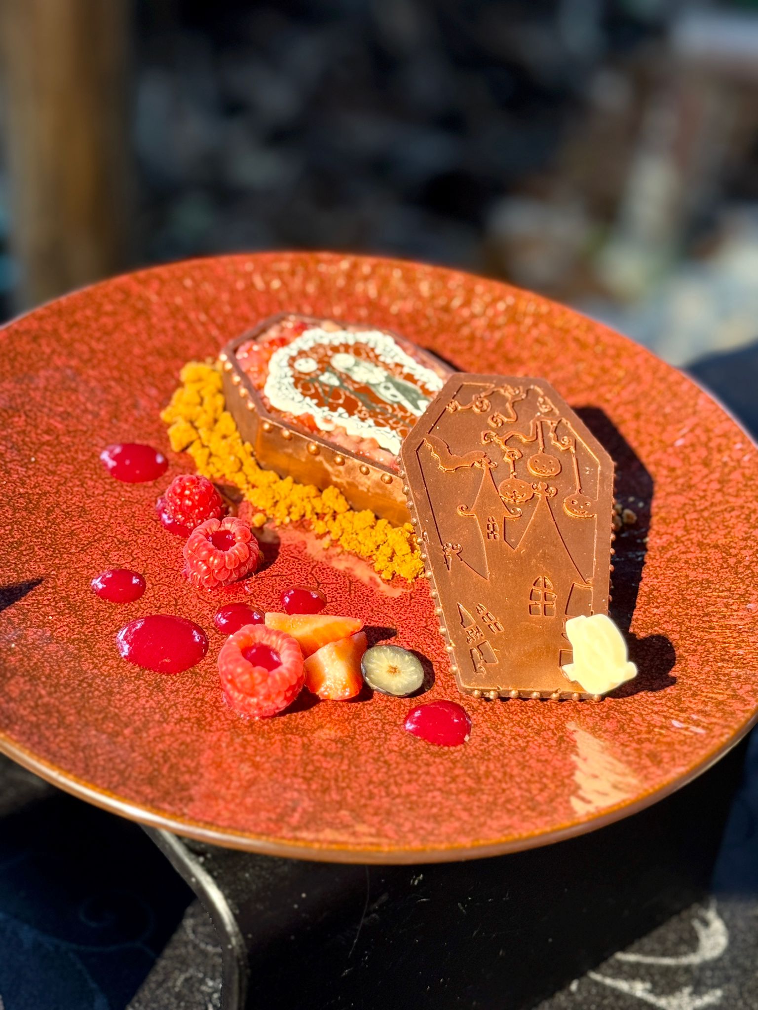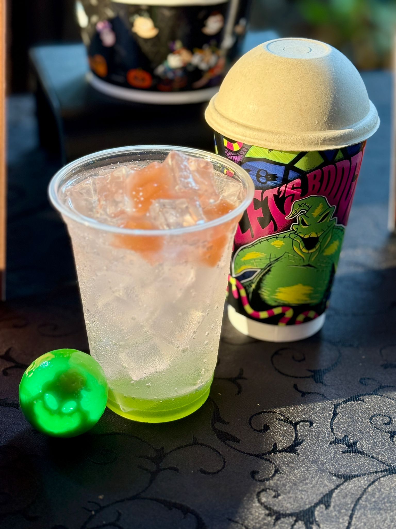 派對當然少不了一場盛宴,參與由南瓜王傾力主理的「阿Jack傜誕大餐」,於河景餐廳的主題晚宴帶來另一種沉浸式的互動體驗。晚宴以特調涼薄蟲露揭開序幕,隨即享用四道菜,包括人氣吸血巫湯與棺材造型的華麗甜品。每道菜之間,別忘了向怪誕城攝影師擺出最型格詭趣的造型,亦可近距離與阿 Jack、莎新與Oogie Boogie 互動,盡情投入怪誕城的故事之中。