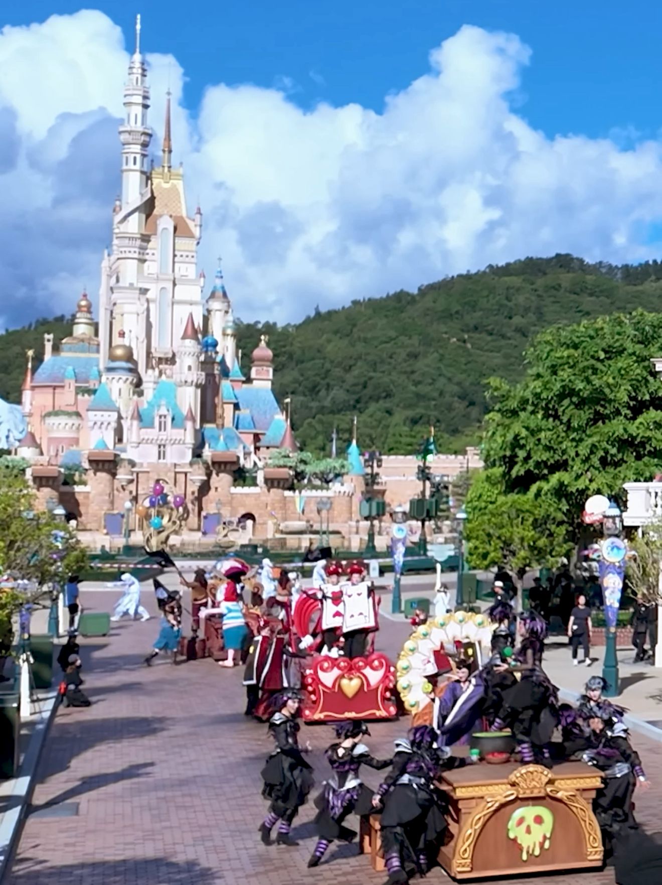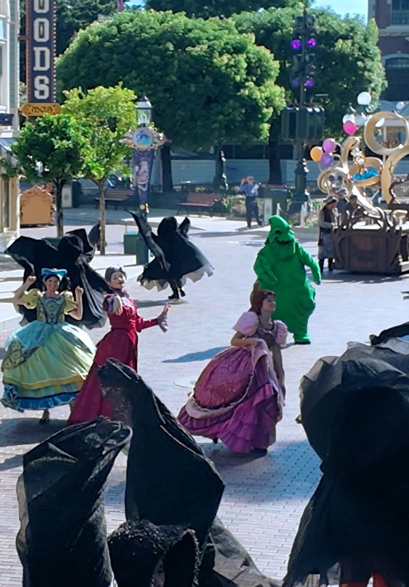 黑魔后聯同 11位惡名遠播的迪士尼惡人及其手下,包括紅心皇后、灰姑娘後母杜明尼夫人及其兩位女兒安蒂與狄茜、加斯頓等在巨型藤蔓與煙霧之中大搖大擺踩人美國小鎮大街,在全新惡人派對舞曲「Party Like a Villain」的音樂配襯下,陣陣邪惡笑聲和詭異氣氛將迴盪整條美國小鎮大街!
