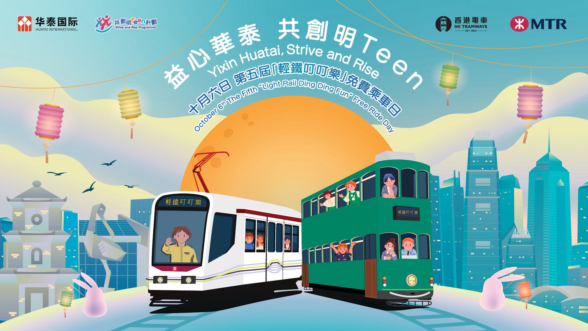 華泰國際金融控股有限公司將於中秋節(2025年10月6日)舉辦第五屆「輕鐵叮叮樂」輕鐵及電車免費乘車日活動,邀請全港市民及遊客在當天無限次免費乘搭輕鐵和全線載客電車,共度中秋!