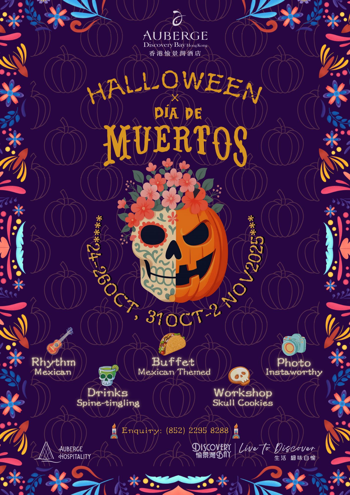 今年十月,2025年10月24至26、31日及11月1至2日,香港愉景灣酒店將幻化為色彩斑斕的「哈囉極樂園」,以墨西哥亡靈節象徵生命輪迴與親情牽絆為核心,結合萬聖節俏皮鬼怪元素,酒店大堂將化身墨西哥街頭,隨處可見亡靈節的傳統佈置,如墨西哥紙剪、萬壽菊、手繪骷髏及夢幻燈飾等,營造出獨特的節日氛圍,尤如置身墨西哥亡靈節熱鬧歡騰。