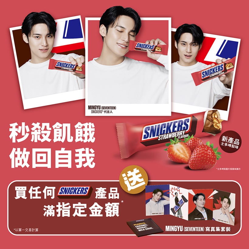 SNICKERS®更特別為與MINGYU粉絲們準備甜蜜驚喜,推出全新限量版MINGYU寫真集套裝換領活動!即日起於指定換領日期,買滿指定金額的SNICKERS®產品,即可於HKTVmall、7-Eleven及OK便利店換領全新限量版MINGYU寫真集套裝一份。此次推出的寫真集收錄多款MINGYU與SNICKERS®合作拍攝的系列造型,舉手投足間盡顯偶像魅力,禮品數量有限,換完即止!