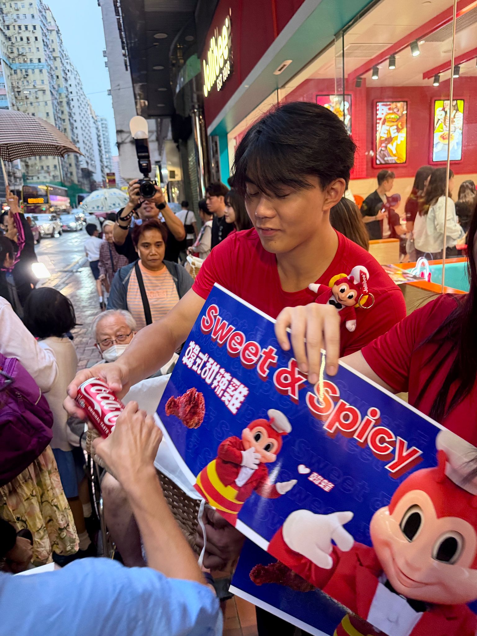 配合新品出道,Jollibee 快樂蜂應援團限時集結 ,快閃北角街頭,為這位炸雞「韓星」打氣造勢。「蜂粉」們高舉應援燈牌,並即場送上韓式甜辣雞試食及派發精美限量應援物,讓途人親身感受韓式甜辣雞的熱情與活力,掀起全城炸雞熱潮!