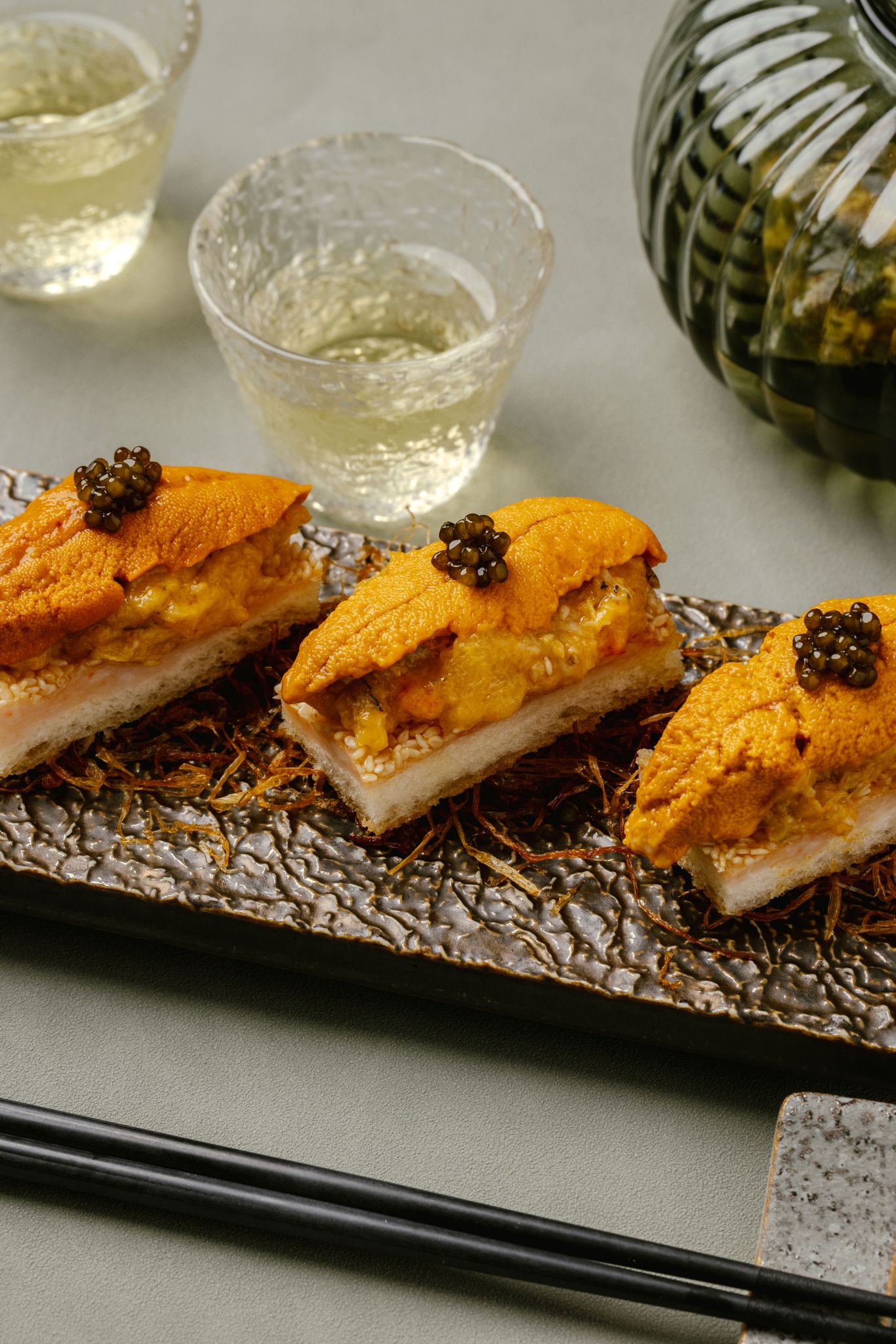 以香脆多士為基礎,襯托鮮甜蝦肉、濃郁蟹粉與優質加拿大海膽,餡料層次分明,海膽入口即化,蟹粉醇厚飽滿,蝦肉彈牙鮮美。表面點綴法國魚子醬,提升整體鹹香與奢華氣息。