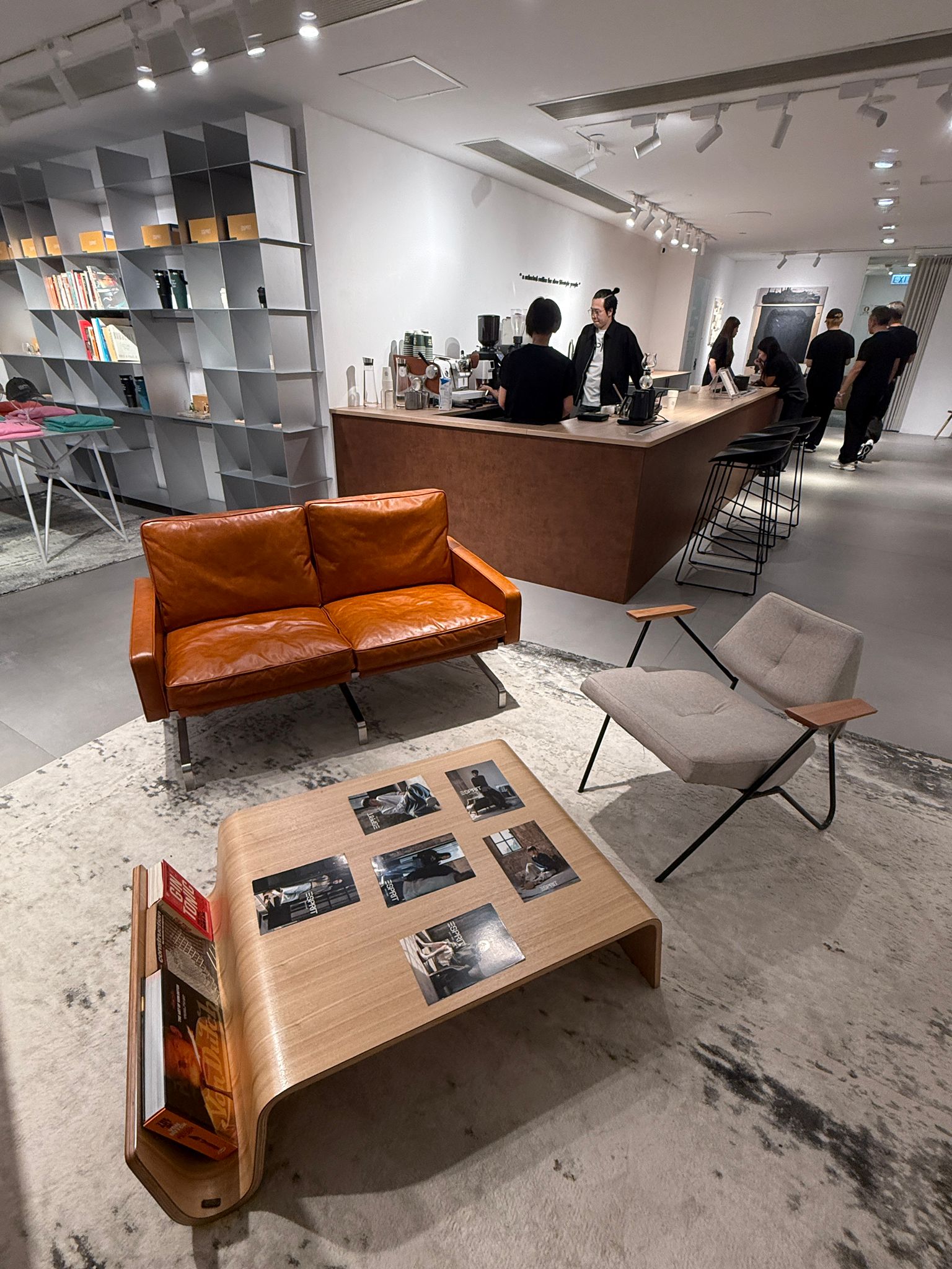旗艦店兩層空間以「視覺衝擊 × 感官溫度」為設計原點,展示 Original 與 Crossover 系列,以鋁質貨架、電鍍幻彩裝置及奇幻綠植營造富玩味的潮流氛圍。店內以「躺平」理念的舒適體驗,地下 Casual Fashion Zone 無縫銜接嵌入式咖啡區「Slow Coffee Club」半開放空間,以生鏽鐵收銀枱與柔和光線結合自然木色,營造可坐可玩、充滿溫度的購物氛圍,形成「購物至休憩」的一體化動線。