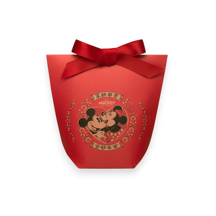 第三款回禮禮物是紅色為主調並綁著紅色蝴蝶結,加上印有米奇米妮牽手親吻,及「百年好合」的祝福,袋內可選擇載入印有「百年好合」及米奇頭像的「心形蛋黃蓮蓉酥」 (1件) 或 米奇曲奇及米妮曲奇(各1件)。每份售價港幣25元正。