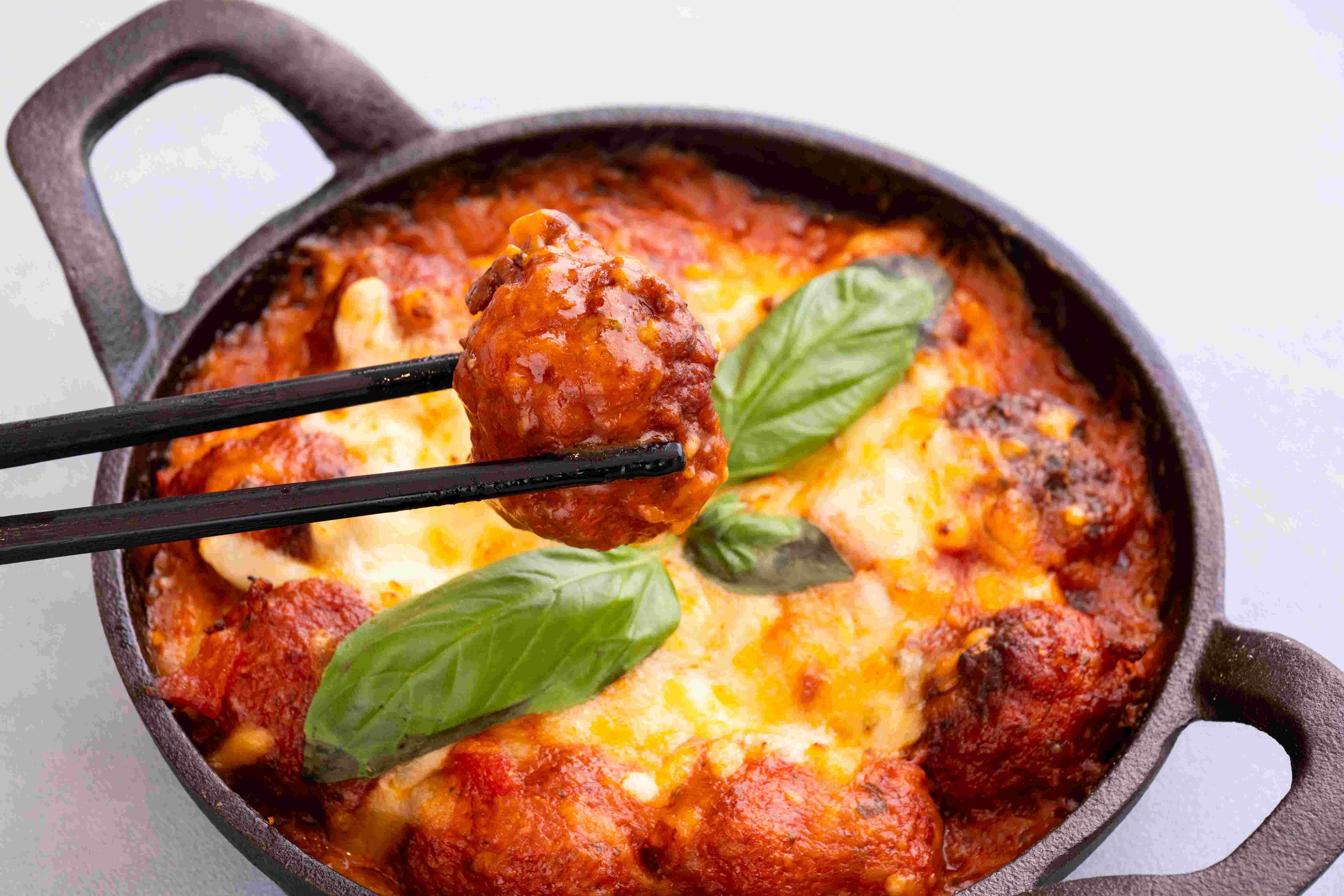 肉丸浸在濃郁番茄醬與芝士中,口感厚實,香草味讓人一試上癮。
