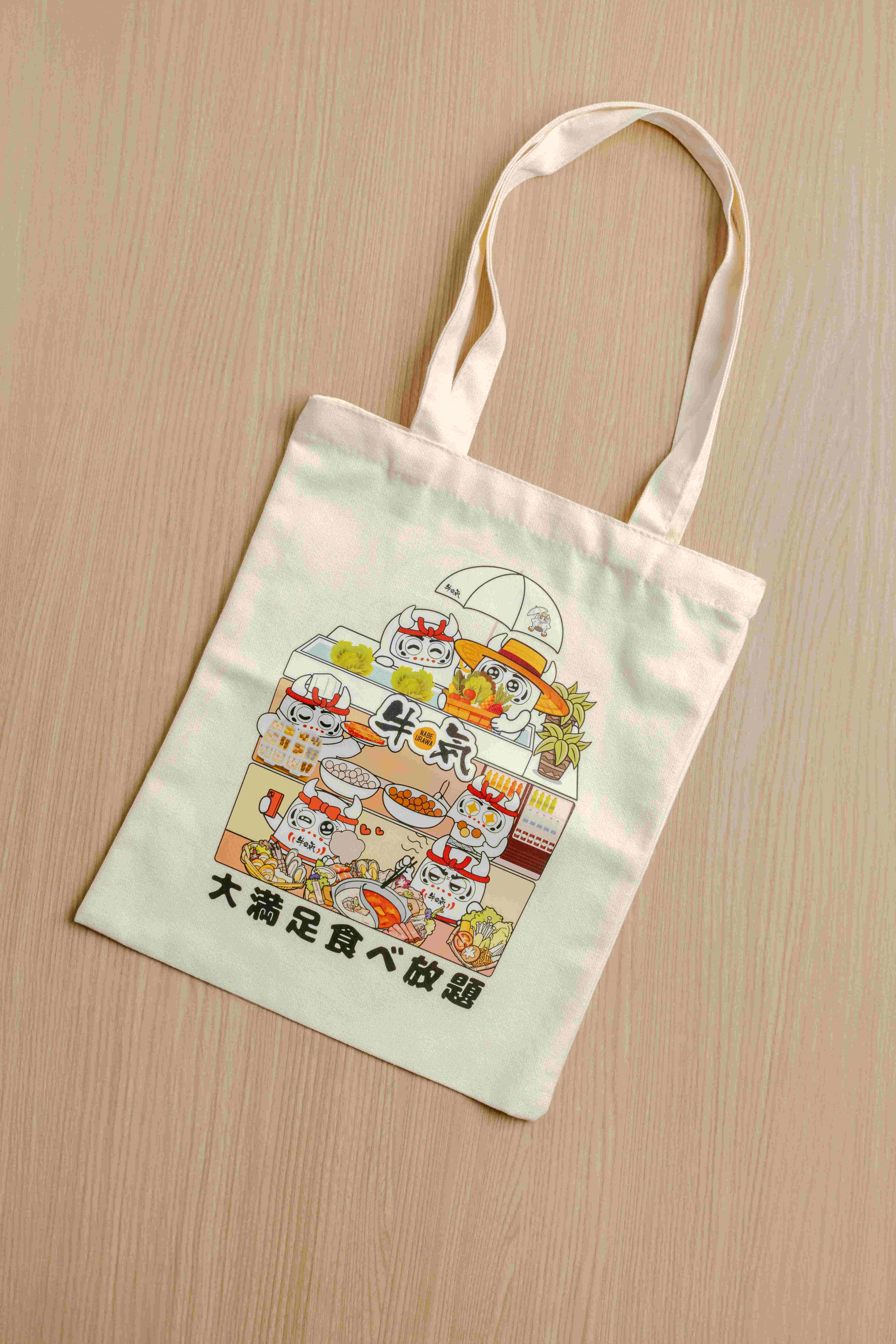 除了地中海主題美食體驗,牛気亦同步推出首款品牌限定輕便袋,將牛気吉祥物達摩廚師與火鍋元素、火鍋料與蔬菜食材插畫融入設計,採用雙面圖案呈現不同風格,一面是滿載食材的自助火鍋區,氛圍熱鬧;另一面則以「和牛大滿貫」打卡頭盤場景為主題,可愛又帶點收藏感。