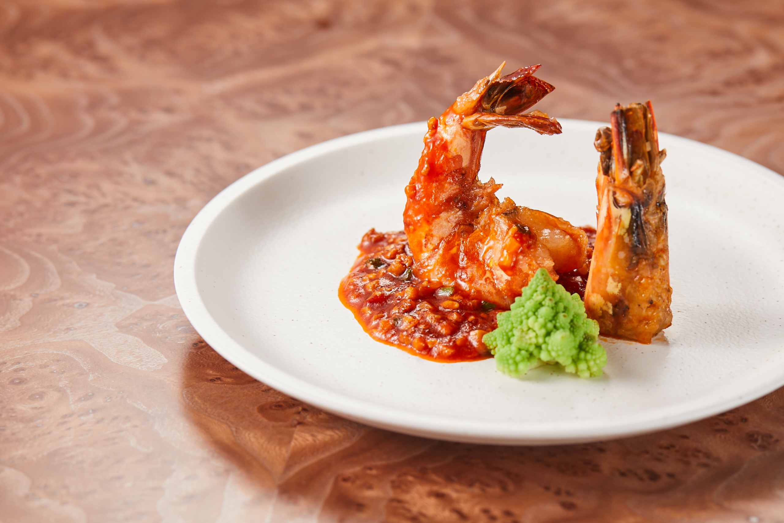 選用鮮活大明蝦,蝦殼紅潤剔透,蝦肉緊緻彈牙,以豆瓣醬與番茄膏炮製濃郁醬汁,佐以香菇、春筍與肉末提鮮,味道鹹甜適中,展現本幫乾燒經典風範。