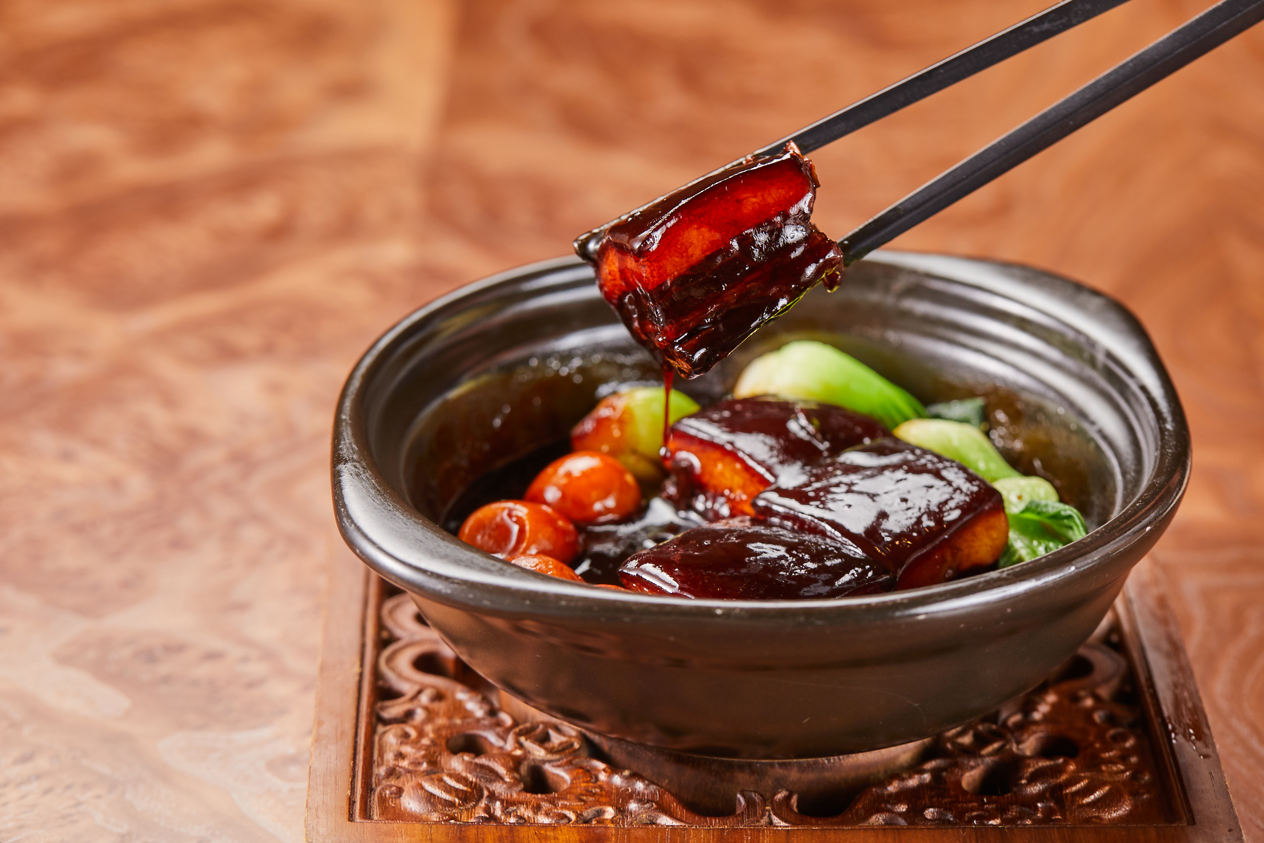以傳統本幫手法炮製,肥瘦相間的五花腩以冰糖炒糖色後慢火燉煮,肥肉入口即化,瘦肉軟嫩入味,鹹甜交織,盡顯刀工與火候。