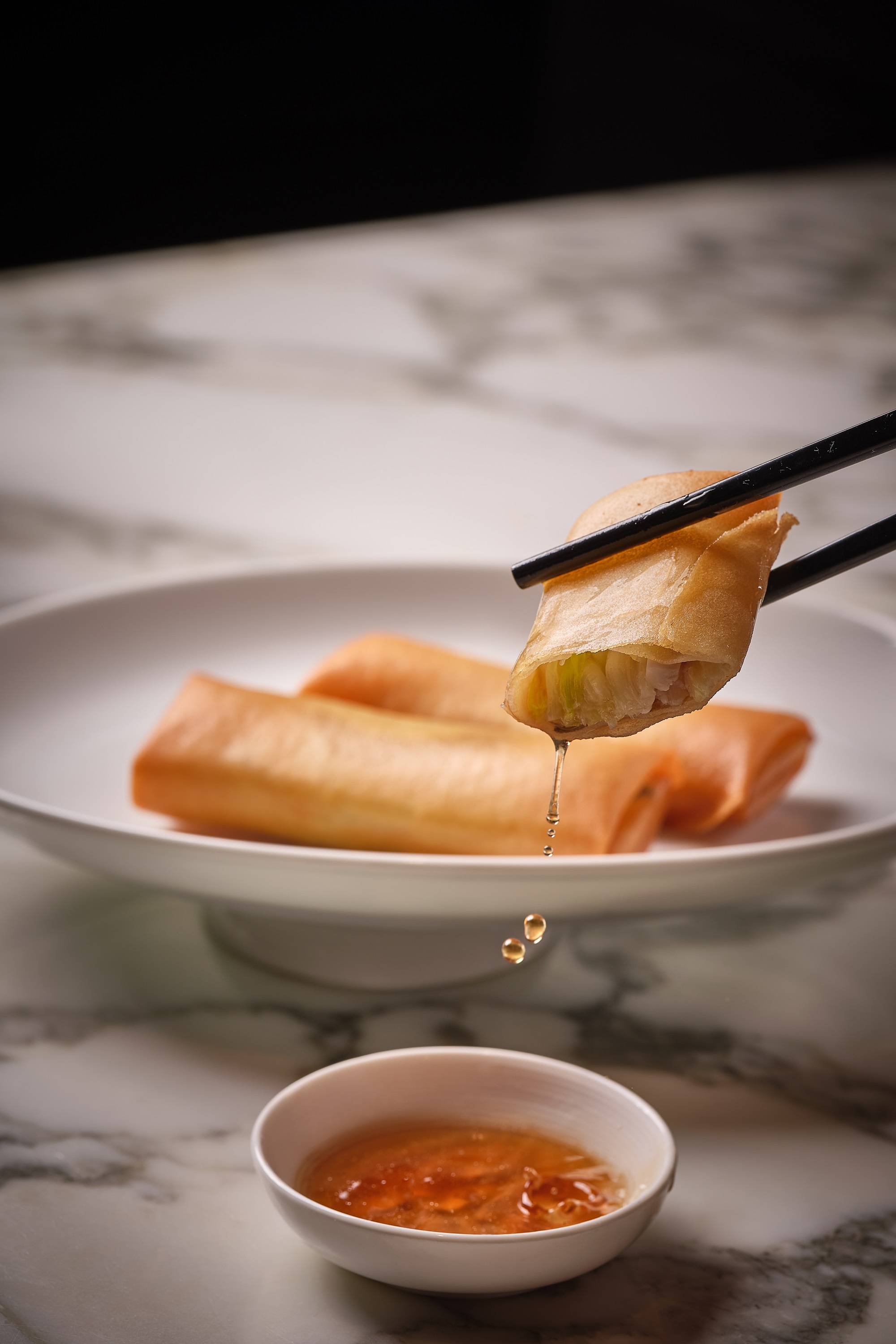 以豬肉絲、馬蹄筍與大白菜為餡,精巧包裹於春捲皮中,炸至香脆金黃,外皮鼓起誘人氣泡。外皮酥脆、內餡軟嫩,口感豐富,令人回味。