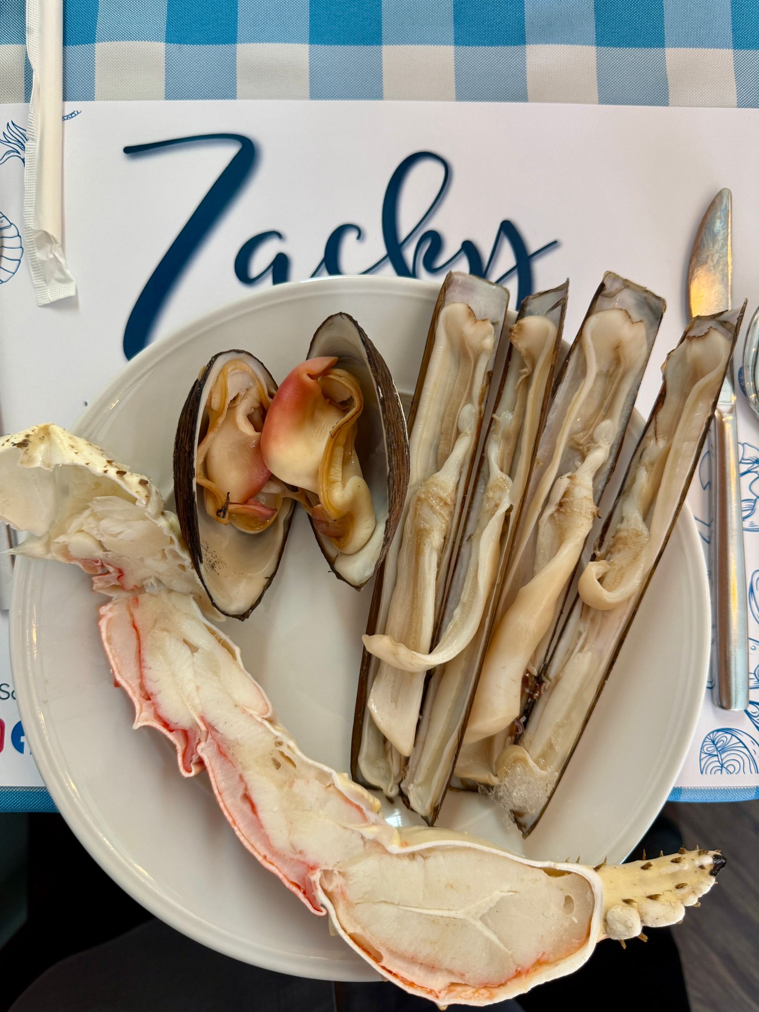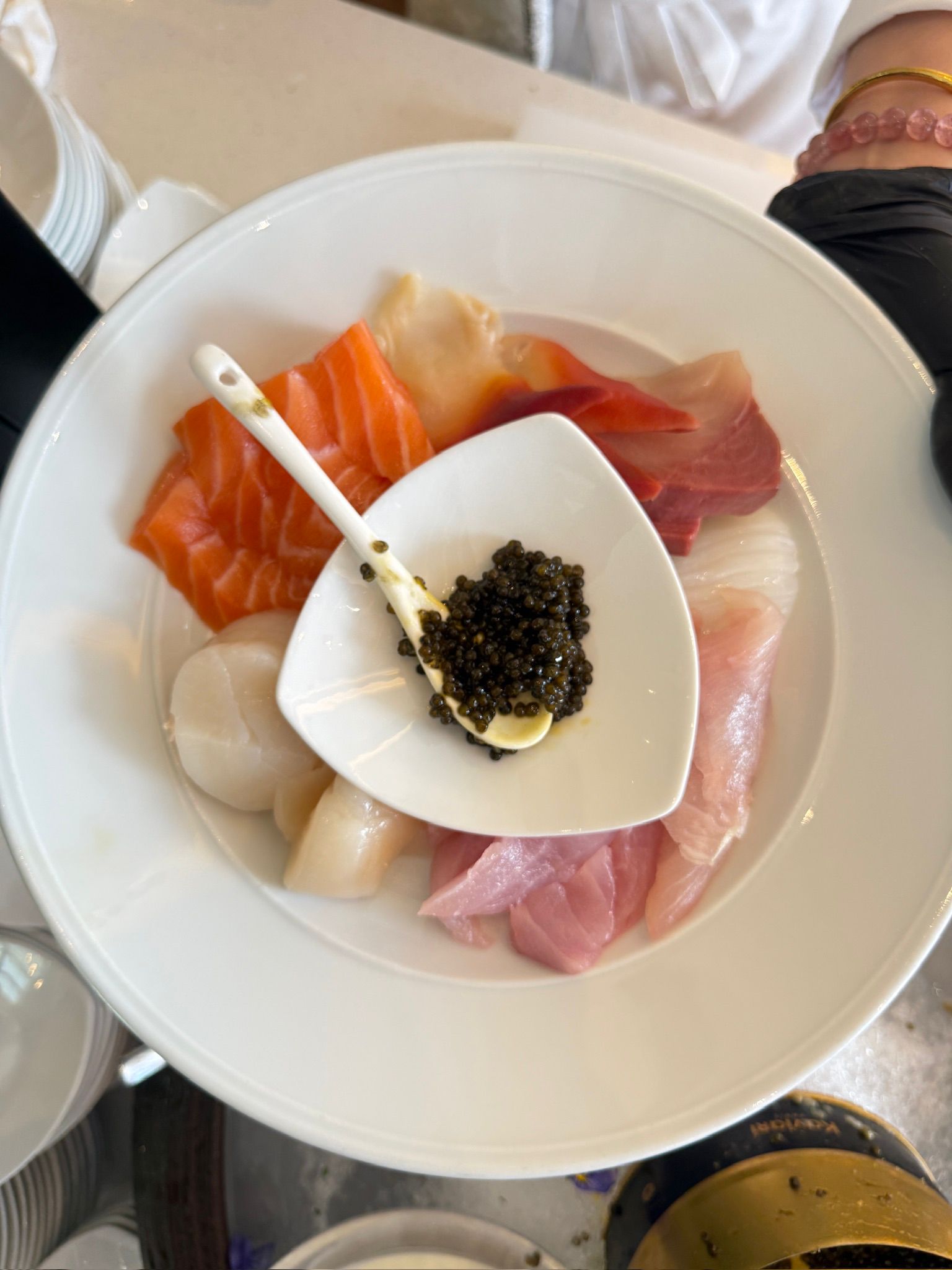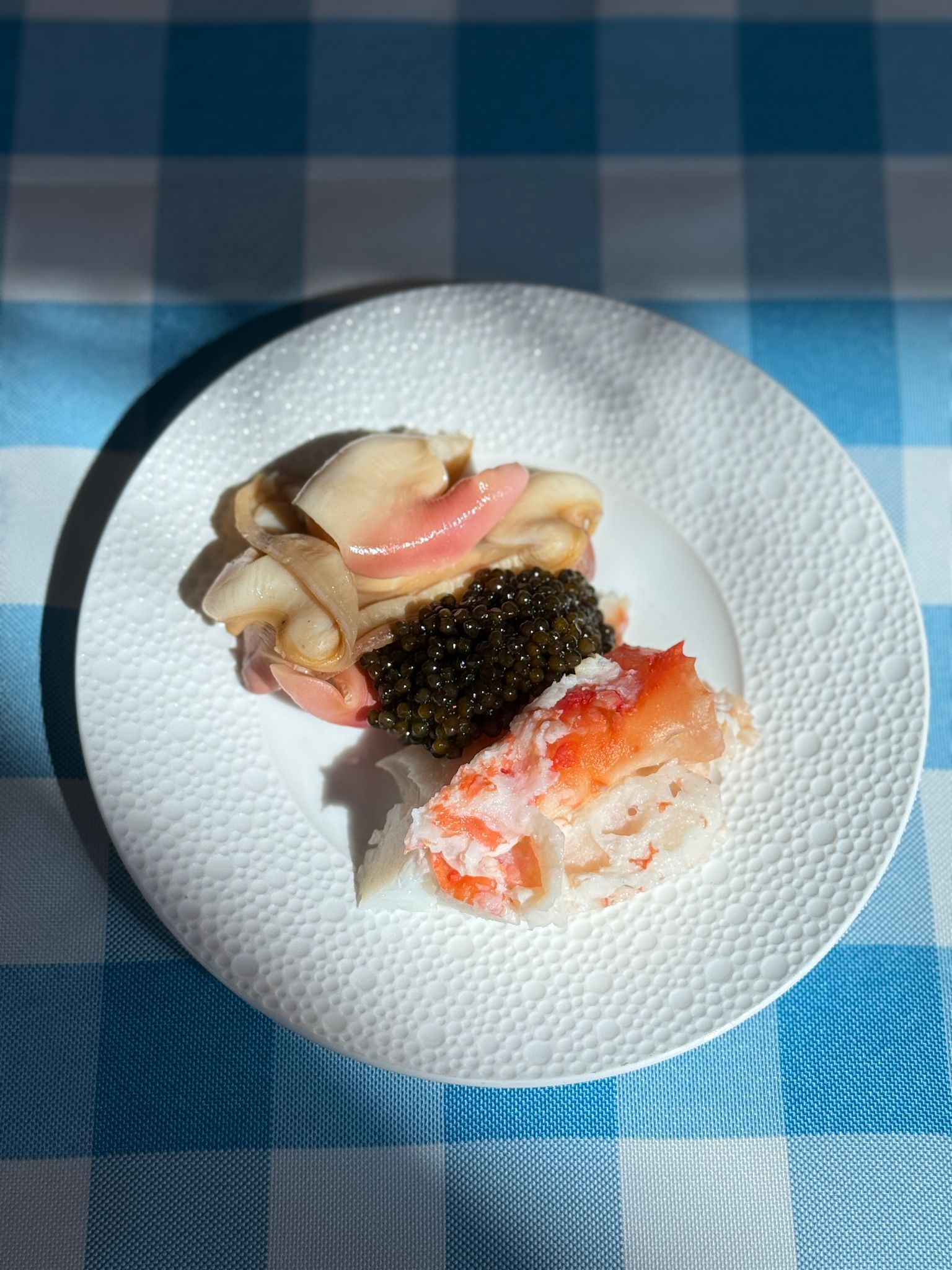 蒐羅南非鮮鮑魚 (再以梅酒浸泡)、阿拉斯加蟹腳、游水斑節蝦、斯里蘭卡琵琶蝦、珍寶貴妃蚌及珍寶蟶子王等至臻海產,層層展現大海的鮮甜與豐盛感受。