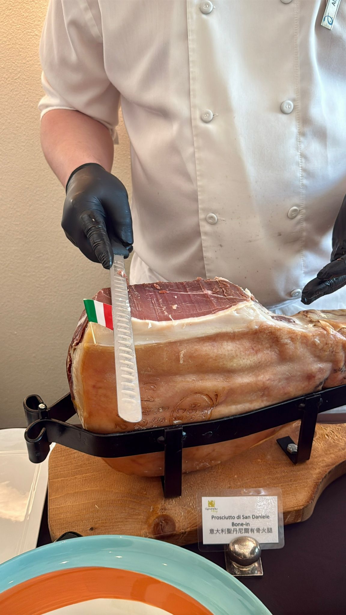 包括慢烤美國極黑和牛肉眼扒、慢燒澳洲羊架寶雲酥、瑞士軟心芝士溶、廚師即切48個月伊比洛黑毛豬有骨火腿及意大利聖丹尼爾有骨火腿,以及濃雞湯浸鴨肝伴橙漬甘筍、