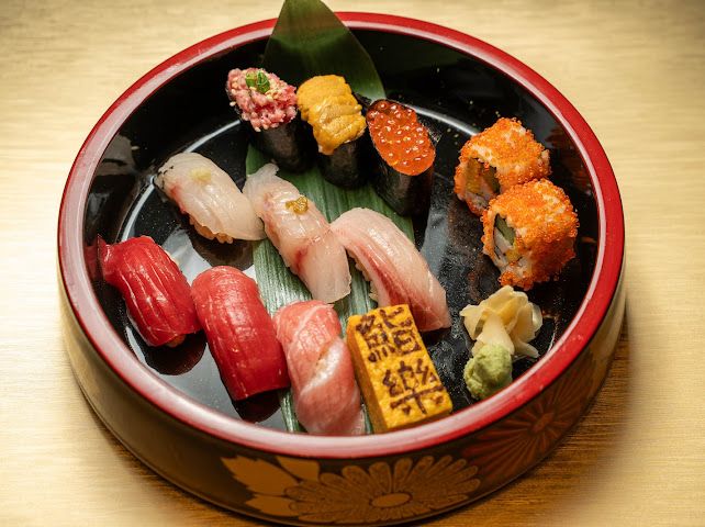 由師傅精選當日最優質食材匠心打造,集合了 10 款風味各異的握壽司與卷物,包括油脂分佈均勻的中拖羅、赤身鮪魚、入口即化的海膽、晶瑩剔透的三文魚籽、鮮香細膩的白身魚、炙燒銀魚、招牌厚燒玉子等。配以新潟越光米赤醋飯,鹹鮮適中,口感層次分明。