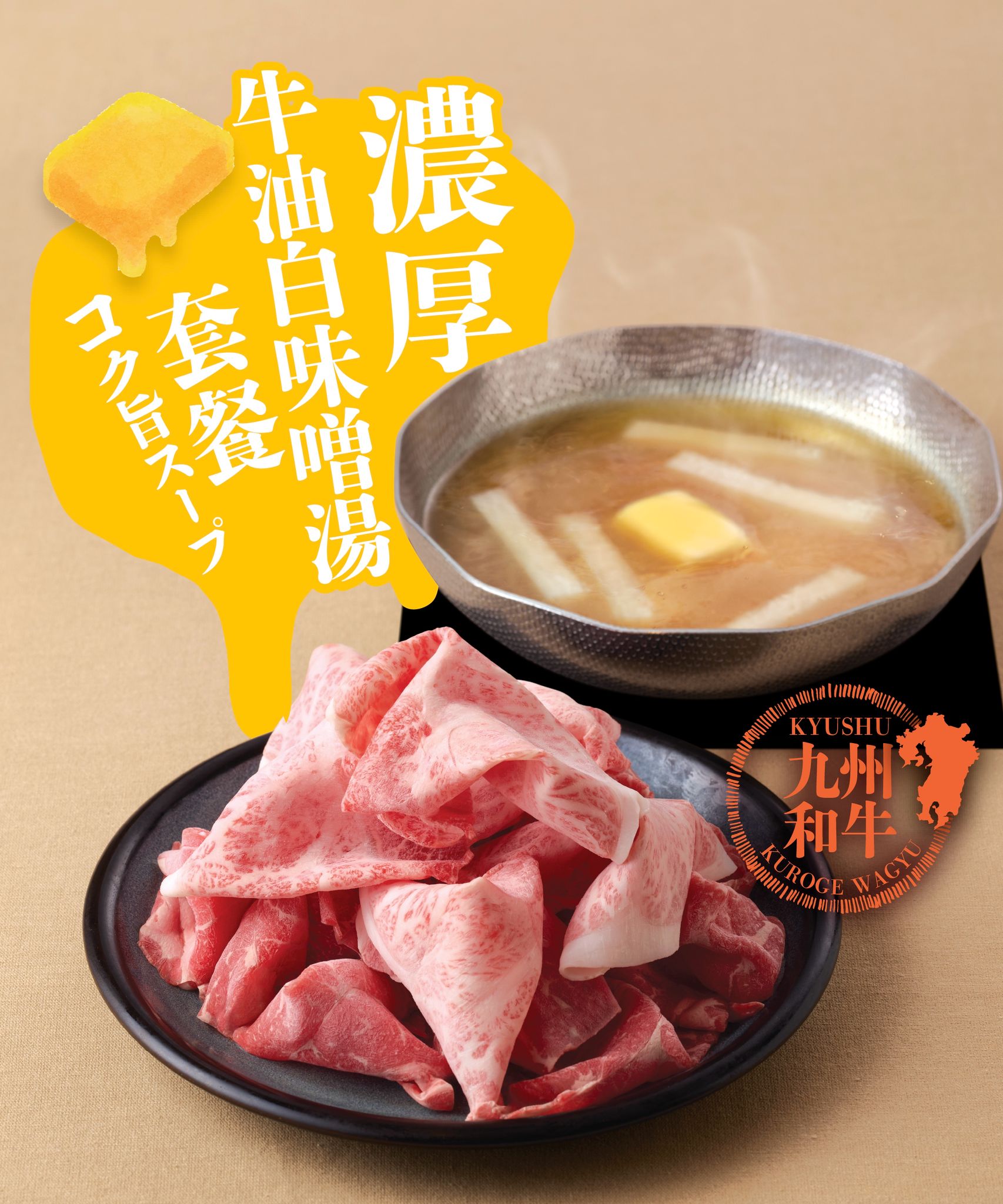 最後加入軟滑牛油,令湯底口感更香濃滑順,並放入「超索汁」的蘿蔔條,充分吸收湯底精華,一口咬下軟嫩清甜!套餐嚴選每隻牛僅有約 2 公斤的九州和牛板腱,油花細膩、入口即化,牛板腱獨有的透明嫩筋更帶來軟嫩中帶脆彈的口感,另外再配上獲美國認證安格斯牛肉(CAB®)品牌官方認證的牛肩胛肉,油花較少卻肉味香濃,咀嚼間品嚐到啖啖牛肉香。