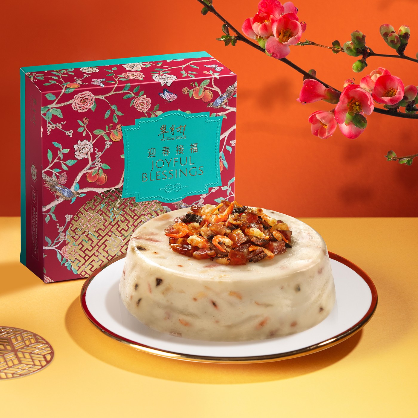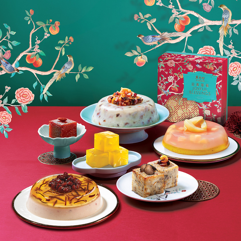 內附開心果年糕一個 (450克) 、金獅獻瑞奶黃年糕一個 (570克) 及紅棗糕一個 (450克),以金獅呈祥為新歲揭開好兆頭。禮盒匯聚全新口味的開心果年糕及紅棗糕,造型雅緻、寓意吉祥,是新春饋贈摯親與商務往來的體面之選。