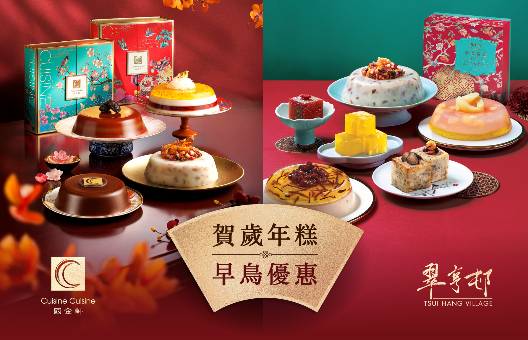 國金軒及翠亨邨推出多款賀歲年糕禮盒。年糕選用上乘食材、全部香港製造,更加入創新口味,配以高貴優雅禮盒包裝,寓意祝福滿載。由即日起至2026年1月1日,預購年糕禮券即可尊享高達58折的早鳥折扣,大量訂購更可獲額外優惠。