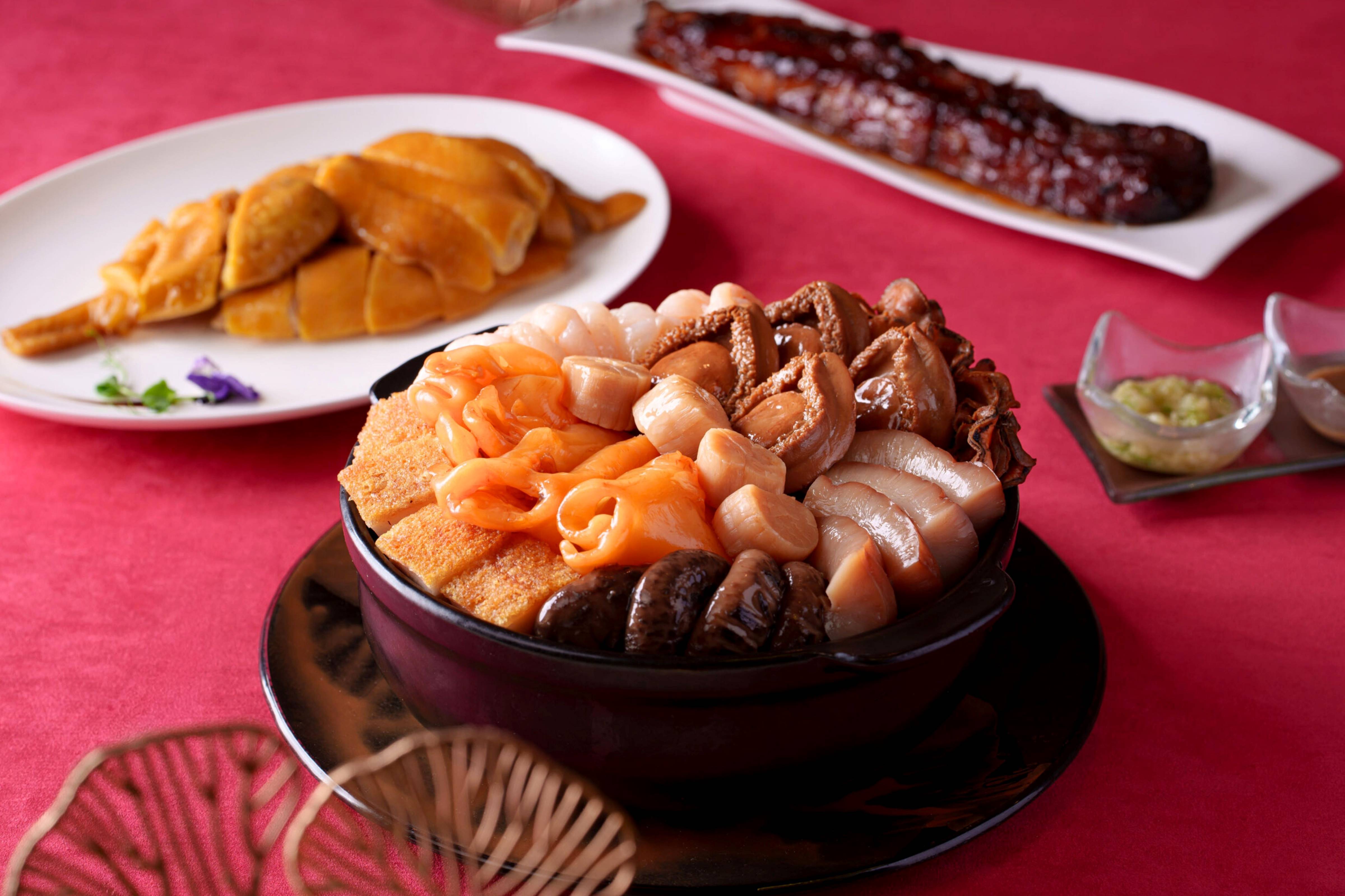 明閣廚藝團隊亦精心準備了新春一品煲,以多款優質上乘的珍餚及矜貴香濃的鮑魚汁熬煮而成,材料豐富。將原個盆菜連砂鍋外賣帶回家中,凡預訂任何一款新春盆菜,更可以優惠價將明閣窩心招牌滋味及賀年菜式帶回家中。