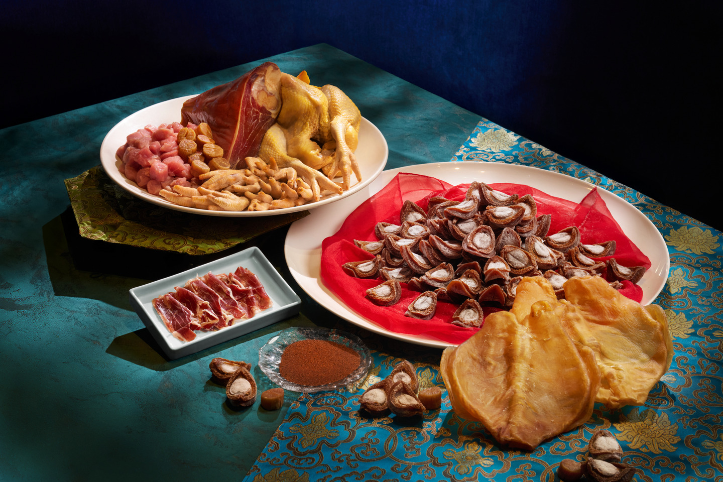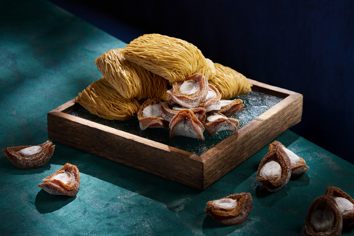 蝦籽麵自上世紀五十年代引入香港,當中以鮑汁撈麵最為經典,更於七、八十年代風靡一時,成就粵式美饌的經典象徵。當頂級溏心鮑魚邂逅經典手工蝦籽麵,每一口皆凝聚這份珍味記憶。唐述嚴選南非東倫敦至伊利沙伯港純淨海域的珍稀鮑魚,位處三大洋流交匯,水質澄澈、營養豐沛。養殖場以14種天然海藻飼養,嚴控生態,確保鮑魚純粹天然。採用日本傳統製乾工藝,結合先進科技與優渥環境,使溏心乾鮑質感柔韌、鮮甜醇厚,被譽為「金溏鮑皇」。鮑魚佐自家熬煮醬汁,以老雞、金華火腿、瑤柱、陳年特選花膠及西班牙黑毛豬火腿等,慢火燉煮36小時,層次豐富細膩,每一口皆凝聚工藝執著。手工蝦籽麵出自擁有逾七十年製麵工藝傳承的香港錦興粉麵食品,配以精炒蝦籽提升層次與鮮香,巧妙昇華鮑魚的甘美滋味。