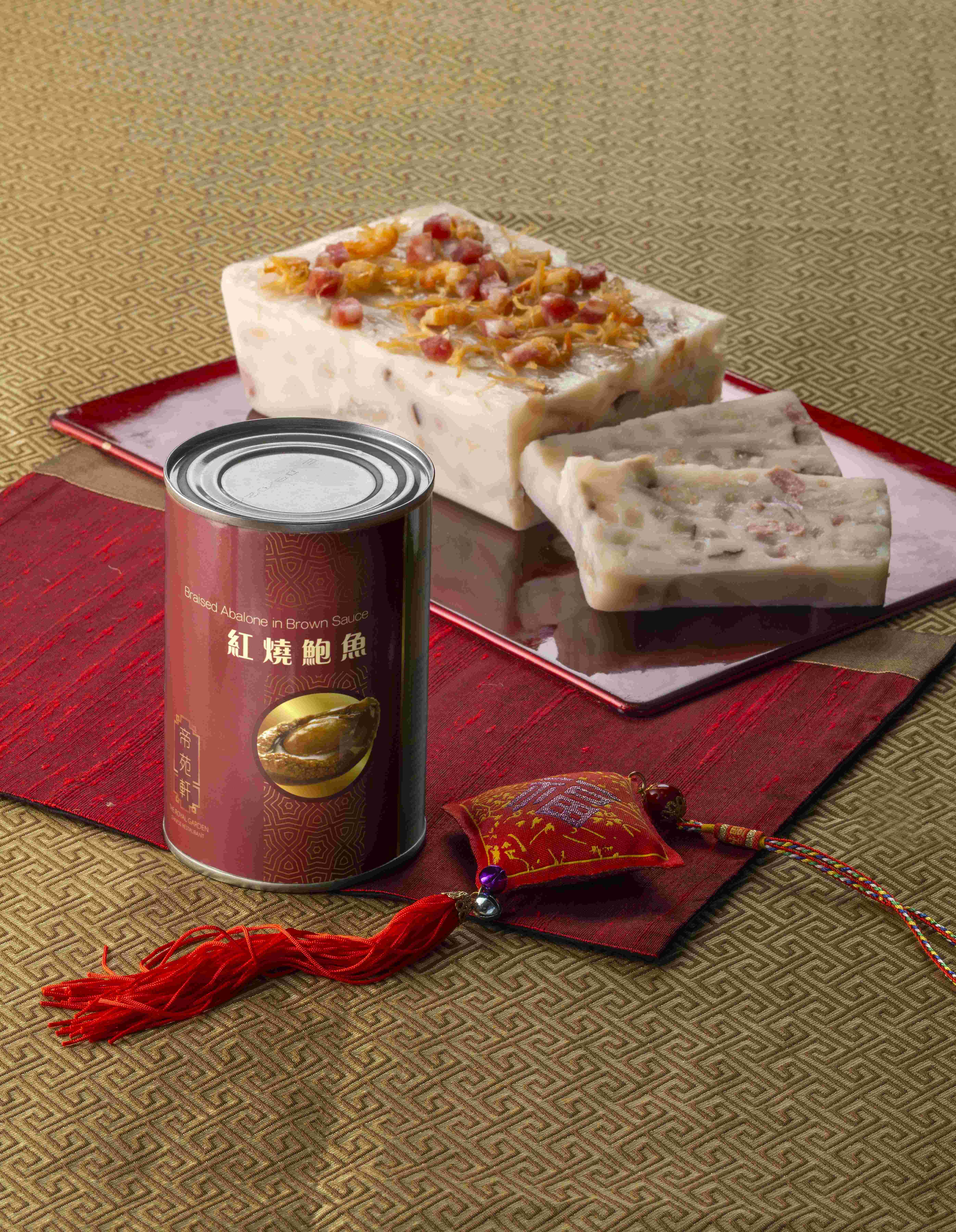 包括帝苑軒至尊日本蘿蔔糕配紅燒鮑魚一罐,贈禮矜貴合宜;