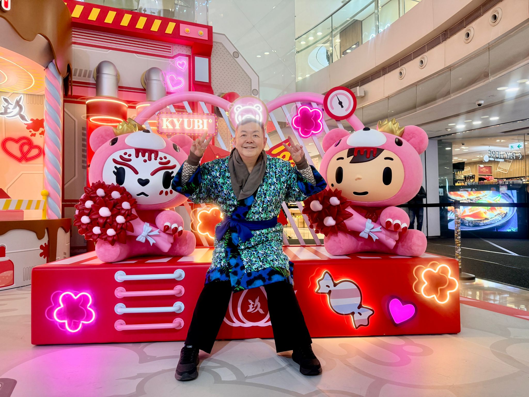 同場加推「KYUBI x Gloomy 大展『熊』圖揮春套裝」,完美延續甜蜜卻帶點反叛的風格,「『熊』情蜜意」的Gloomy,即使九尾靈狐在旁守護,仍吃到滿嘴朱古力醬,更把馬卡龍散落滿地,身體力行展示何謂甜蜜「滿瀉」。