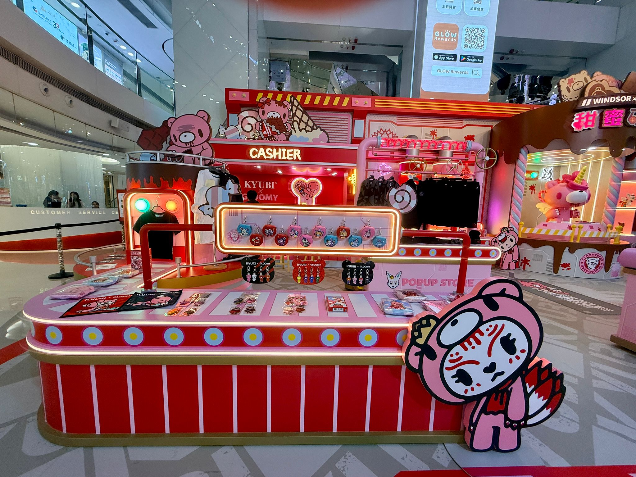 甜蜜研究所設有兩大刻心基地,分別是「甜蜜長『玖』控制室」,Gloomy奔馳獨角獸化身甜蜜擔當,率領一眾KYUBI九尾靈狐及Gloomy角色大軍,齊齊投入甜品生產線;另一基地就是「KYUBI x Gloomy 粉『熊』團圓世界」,KYUBI和點上 KYU小痣的 Pity,輕捧鮮豔賀年花束準備與大家拜年。