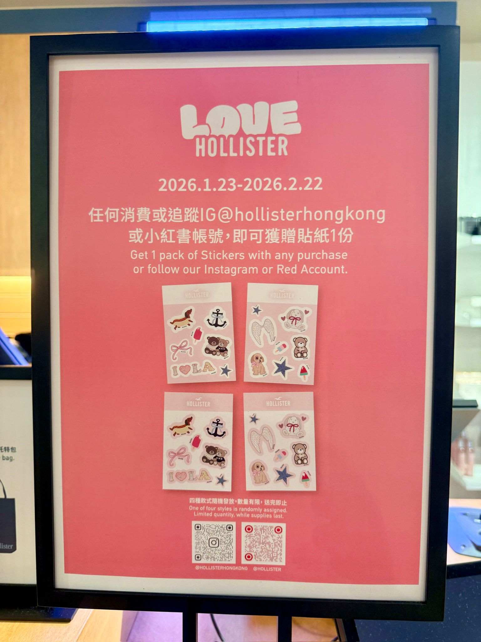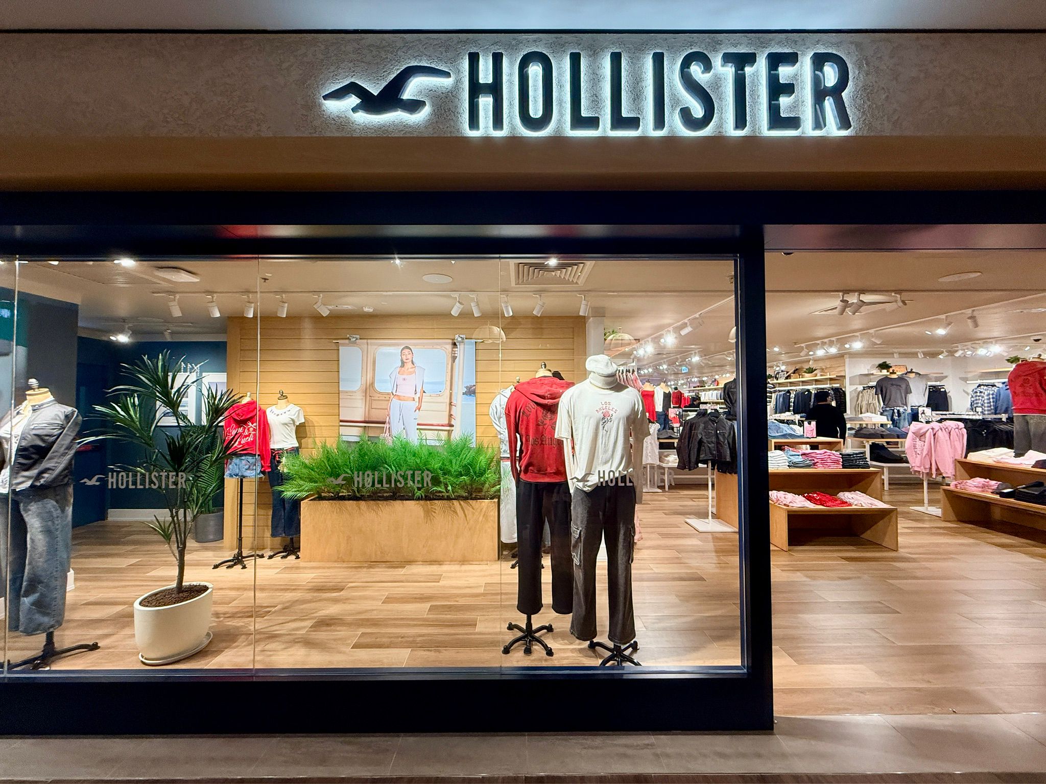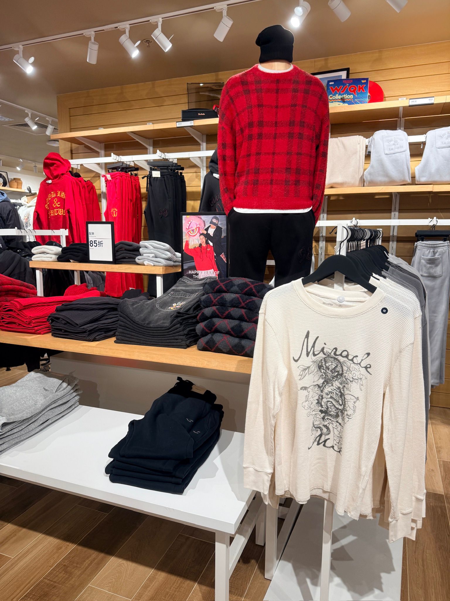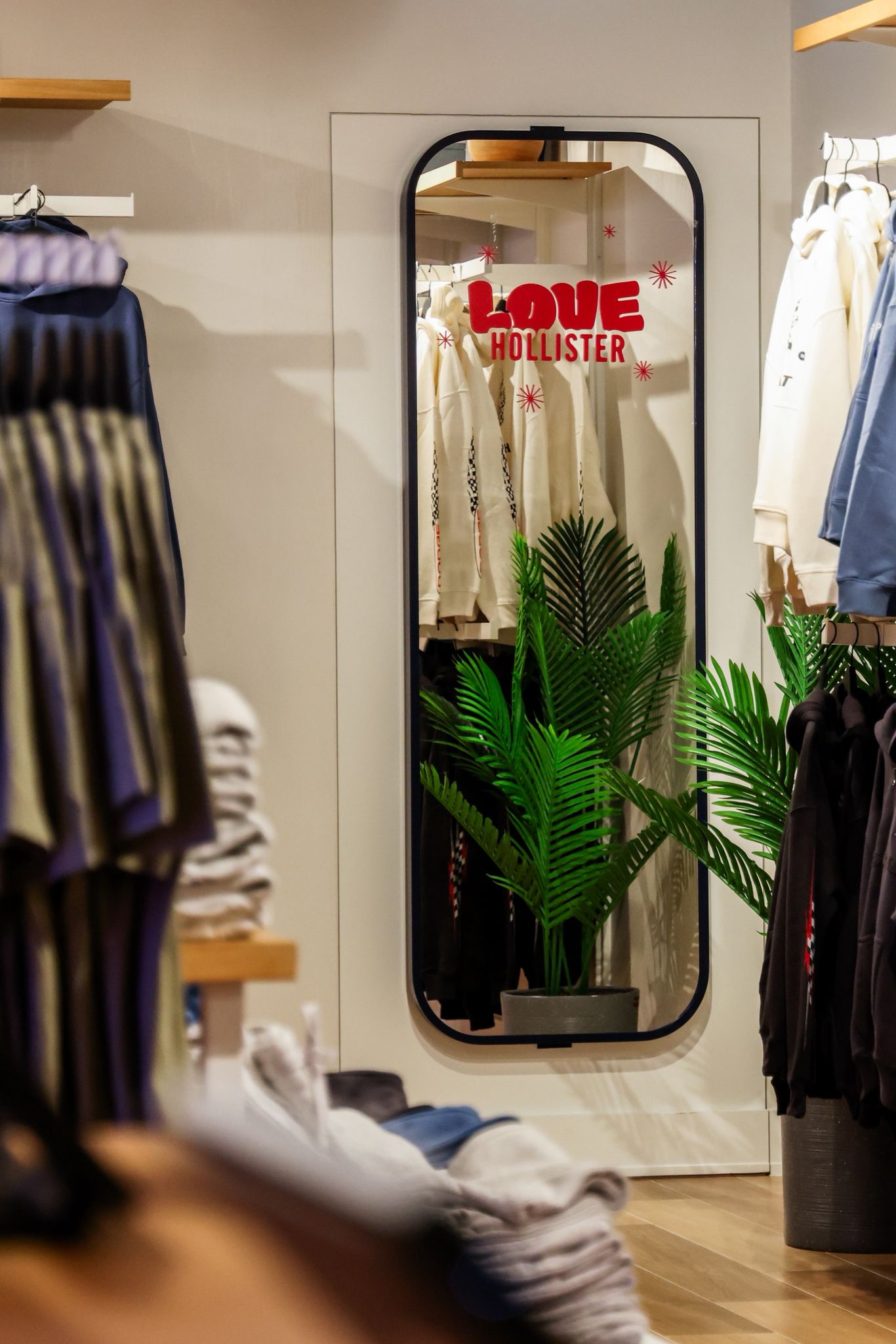 櫥窗內的新春系列新品悉數亮相,提前釋出新春氛圍。與此同時,「Love Hollister」元素驚喜躍上試衣鏡,紅色與粉色的結合為門店再添一份活力。