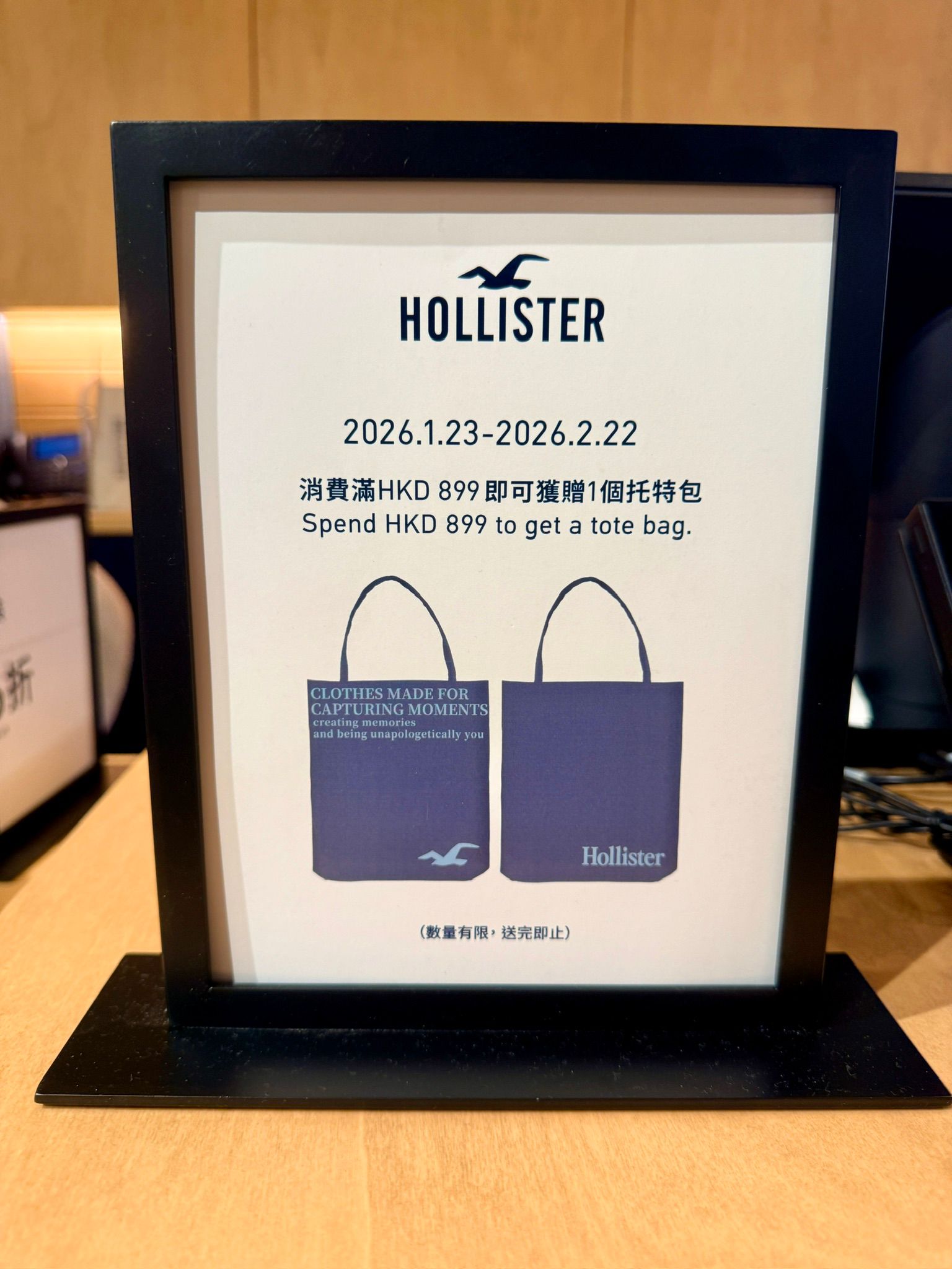 而於店內消費滿 HKD899 即可獲贈品牌帆布袋一只,數量有限,送完即止。