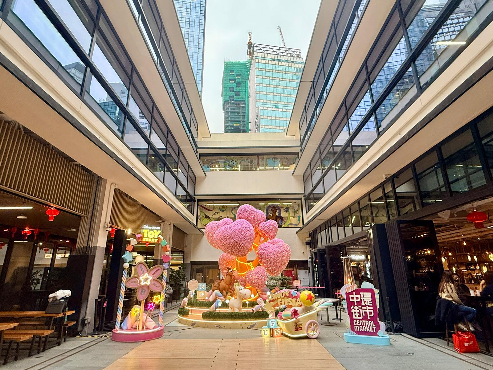中環街市今年將滿載歷史底蘊的空間幻化成一座夢幻花園,呈獻「幻彩躍馬迎新春」慶典,特別以打卡主題裝置形式,呈現《反斗奇兵》(Toy Story)中兩位超人氣角色:憨厚可愛的紅心(Bullseye)與萌感十足的獨角獸牛油仔(Buttercup),以可愛活潑的打卡場景,陪大家度過一個融合新春喜慶與情人節浪漫的佳節。