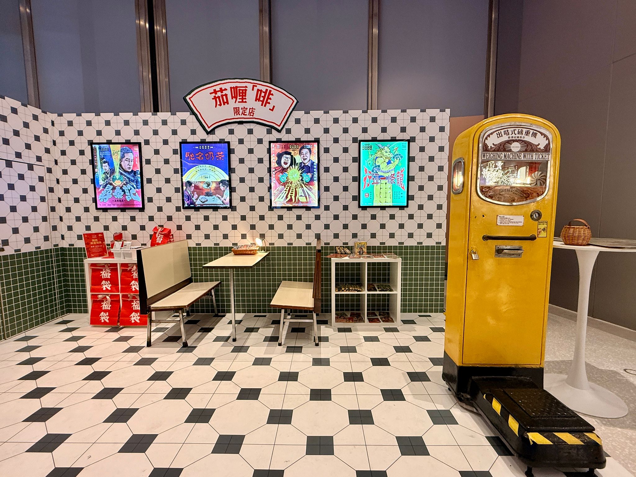 店內特別聯乘本地藝術單位「無紙用」,以標誌性的復古風格與斑駁質感美學,重塑香港舊懷電影的視覺靈魂,除了牆上掛有多幅藝術家親筆設計的經典電影海報,限定店亦有精選新春咖啡福袋及「無紙用」新創作賀年精品,配合及舊茶室傢俱配置,讓顧客在咖啡香中重溫經典電影時刻。