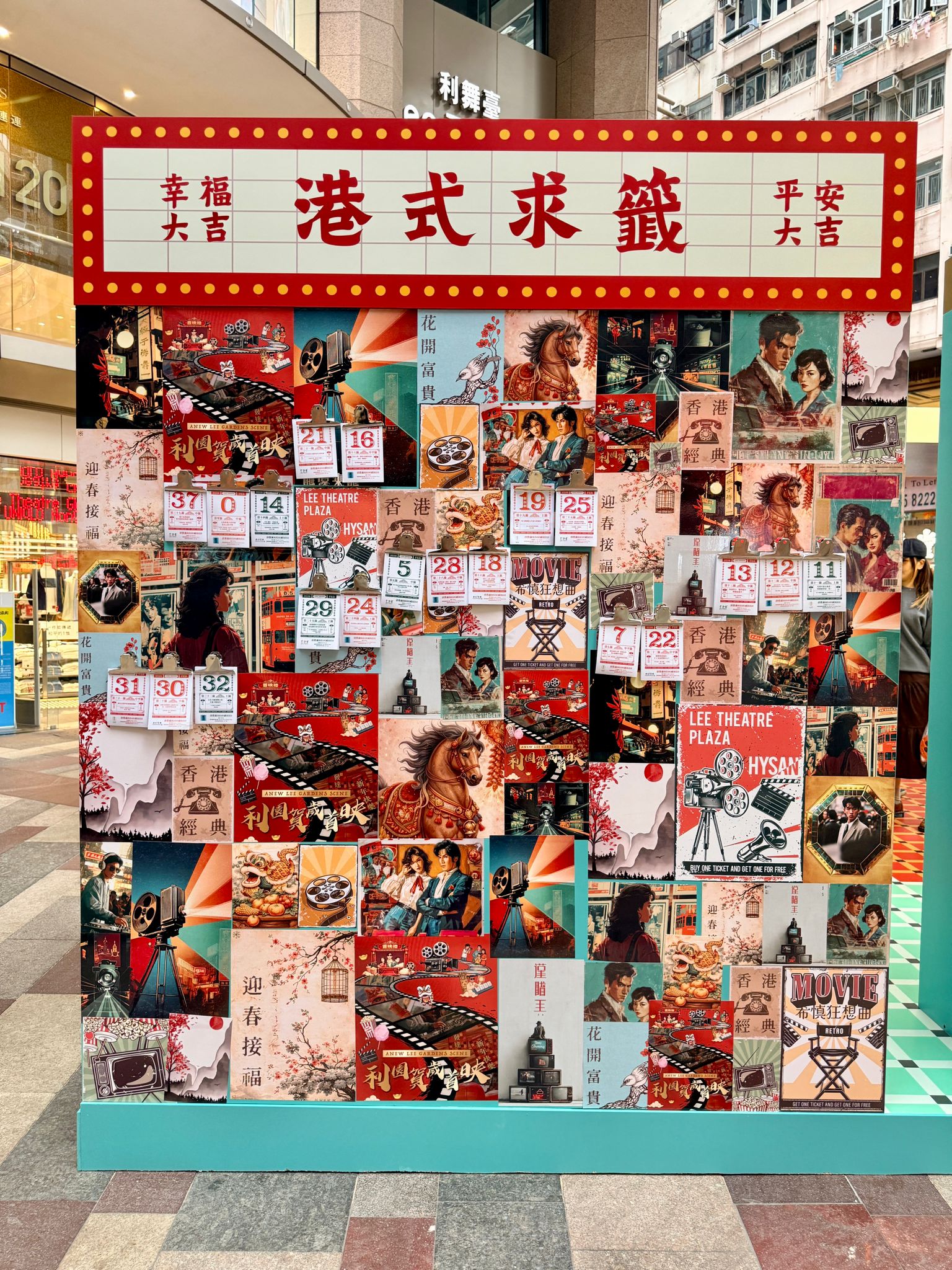 希慎廣場化身為懷舊電影世界,引領各位進入港產賀歲片玩味世界,亮點包括高達 8 米高懷舊戲院正門及經典對白製成的 7 米幕簾 ,場內不論是霓虹燈招牌、二創電影藝術海報、售票處等均充滿驚喜,令你瞬即回到老香港之電影聖地,可以多方位打卡留念。