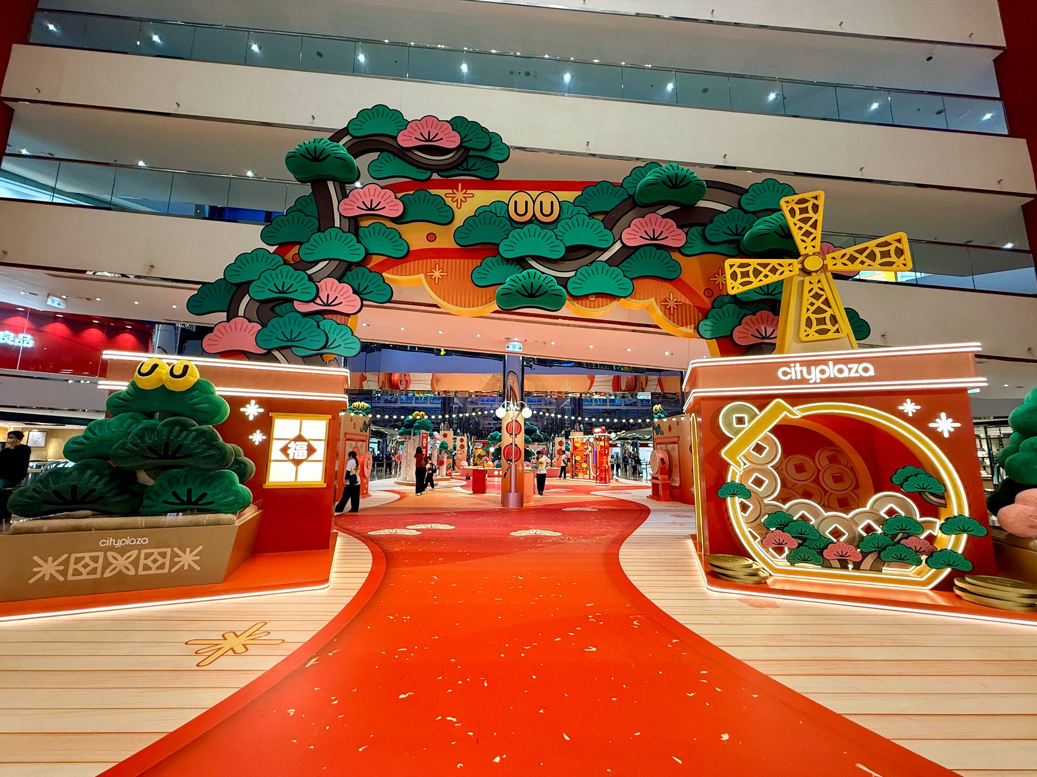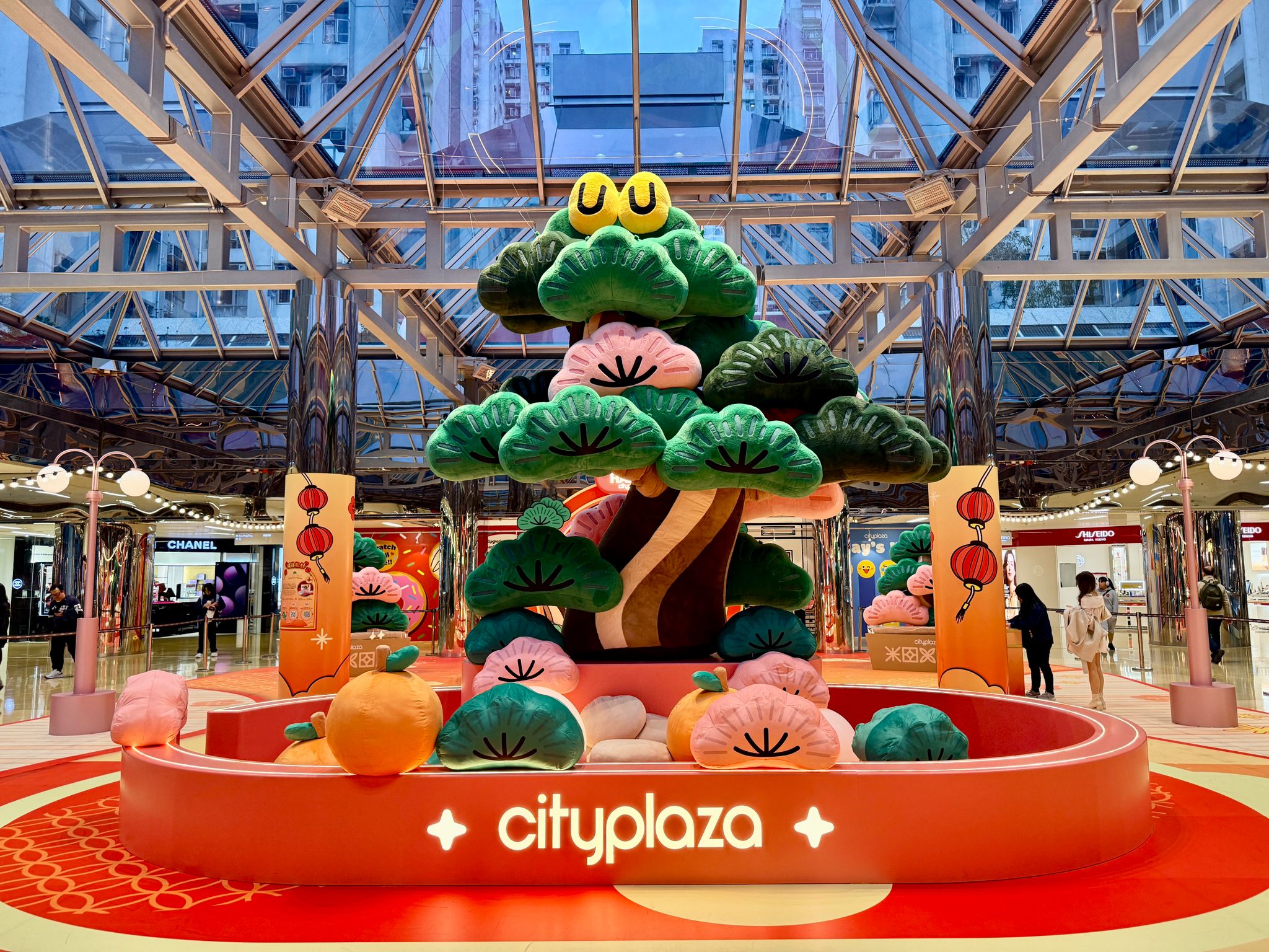 太古城中心與「松與松」聯手的《福運松林》在二樓中庭及中橋設有4大福運區域、合共8 大美拍裝置,由品牌的人氣萌趣角色「睡眼青松」引領大家漫步祈福、招財及接緣的福運之路,當中最矚目的當屬可走進內部打卡的5米高「常滿聚抱樹」,毛絨絨的松樹仿真手感讓人沾滿好運,抱起松葉及巨型大桔咕0臣能令新春好運蒸蒸日上;加上5米長的「⾶龍接福」、7米高的「開運松此喜」、必與愛人攜手走過的松緣橋「⼀路幸福」、互動遊戲「盤滿『撥』滿」,以及位於商場地下的兩大打卡位等!