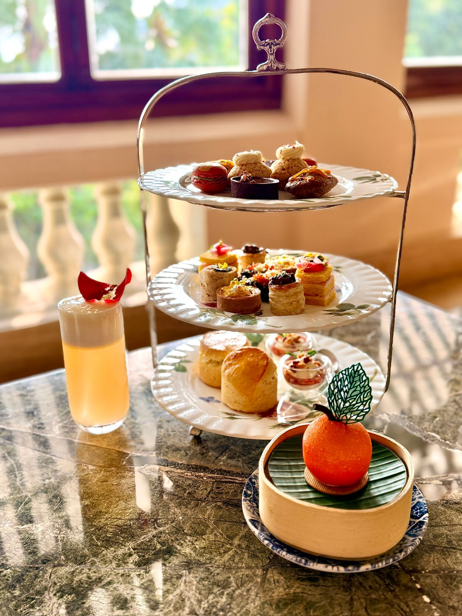 露台餐廳主題下午茶呈獻一系列色彩斑斕、精緻美味的鹹點及甜點,並盛載於傳統三層銀器架上,重現昔日下午茶之復古情懷。每一口美點都精心炮製,皆彷彿引領賓客走進時光交錯的懷舊氛圍。每兩位 788 港元(平日) / 888 港元(假日)+ 10%服務費,包括《張愛玲的淺水灣》展覽入場。