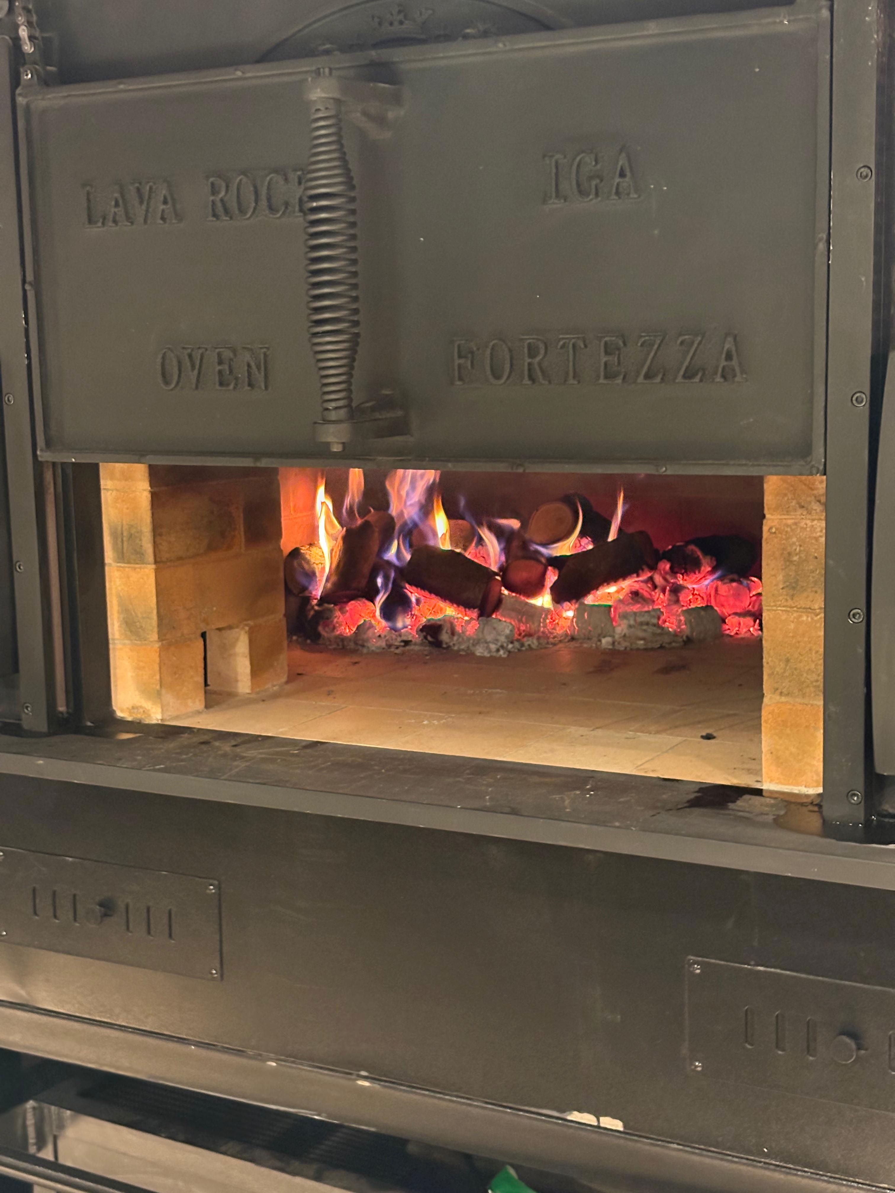 為了精準還原柴燒料理的靈魂,餐廳特別斥資引進特殊窯爐。主廚嚴選食用級荔枝木放入窯爐中。經過約 30 分鐘的燃燒,將其煉製成高達 500 多度的焰紅柴火,隨後再由廚師手動剷移至烤爐。