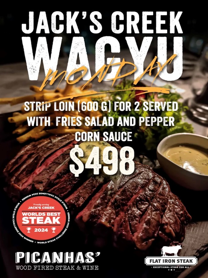 除此之外,星期一絕對不容錯過二人份、600克被譽為「世界上最正的牛扒」Jack’s Creek 和牛西冷扒(港幣498),肉質豐盈軟腍,配有黑椒汁,令人回味無窮!逢星期二的「T骨牛扒星期二」,客人可以港幣$599半價享用1公斤T骨牛扒(原價港幣$1,198),鋸扒迷更可升級至澳洲M4-5和牛T骨牛扒,只需港幣$744,牛味濃郁,油香四溢。