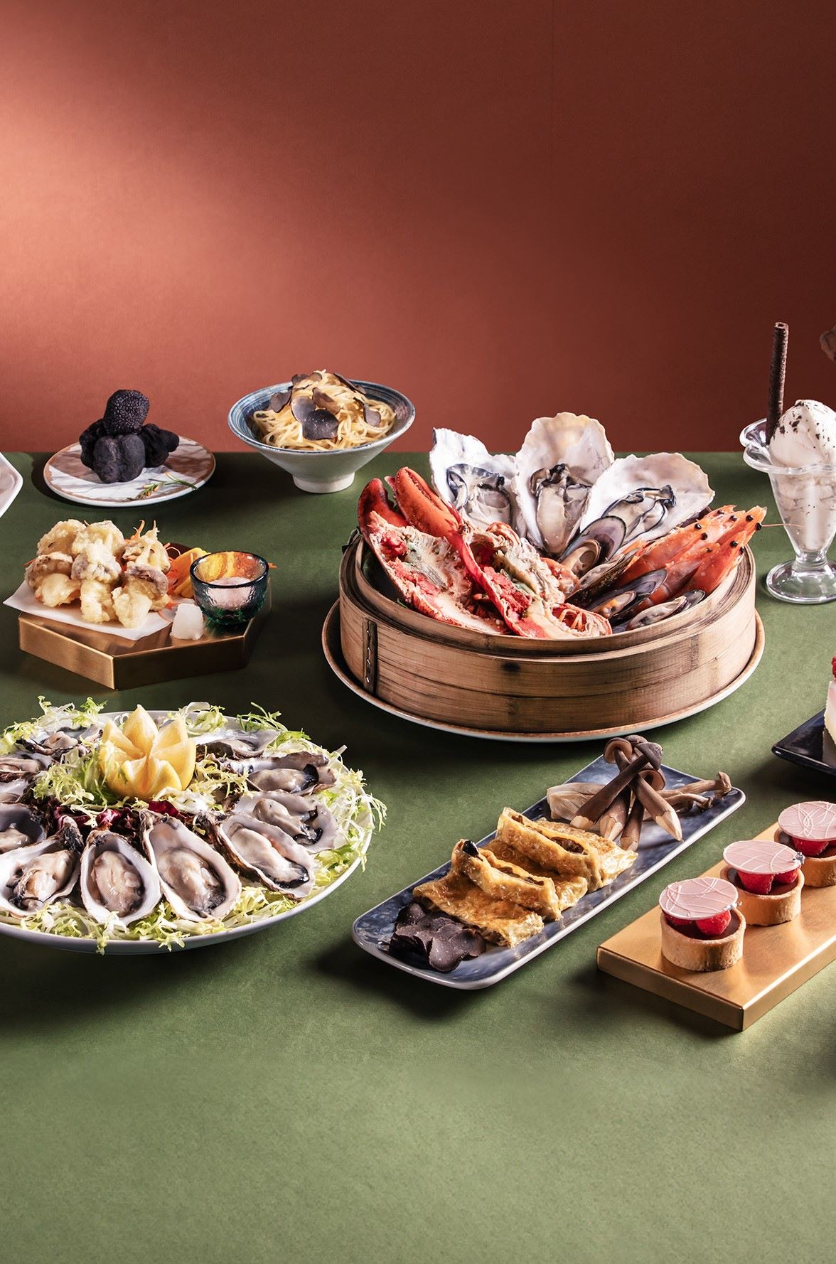 另有紅桑子朱古力軟心撻、士多啤梨忌廉芝士蛋糕及玫瑰洛神花糕,每款甜品皆精緻細膩,令人目不暇給。必食推介還有貫穿主題的黑松露雪糕、多款不同口味的自家製意大利雪糕及 Häagen-Dazs雪糕,為盛宴添上甜蜜驚喜。