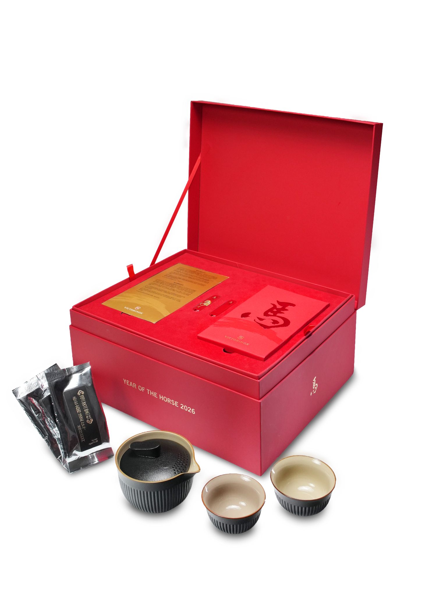 2026 馬年限量 Huntsman瑞士軍刀(Swiss Army Knife™)以「馬」所象徵的果敢與活力為靈感,刀殼以馬年主題元素作視覺焦點,線條俐落而富層次。為增添新春送禮的儀式感,Victorinox 同時準備一系列節慶禮遇,馬年主題利是封以鮮明設計呼應佳節氛圍,而旅行茶具套裝則以「Prepared for your Journey Ahead」為理念,讓用家無論在家中或旅途中,都能輕鬆享受茶道帶來的安定與從容。