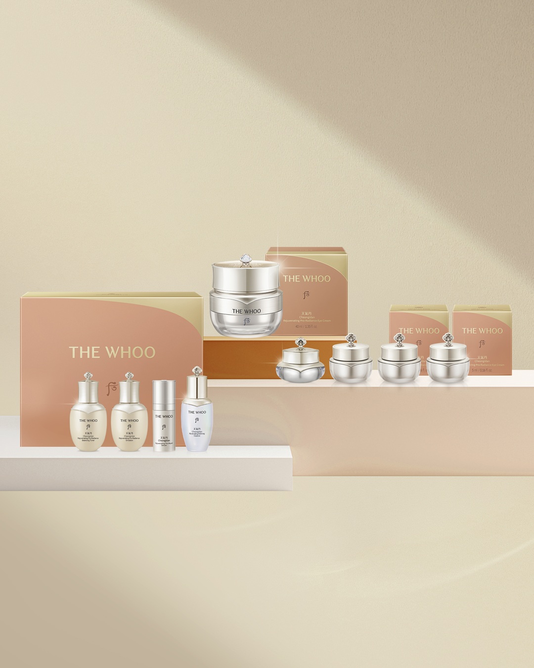 韓國高端護膚品牌 THE WHOO,秉承傳統韓方智慧,融合現代尖端科技,匠心呈獻兩款針對不同肌齡與護理需求的眼霜套裝,包括天氣丹 光耀煥活緊緻眼霜增量套裝(HK$1,550/價值HK$4,618)及 還幼 凝顏眼霜至臻禮盒(HK$3,800/價值HK$10,291),從深層滋養至細胞修護,由內而外為眼周肌膚注入滋養,精準撫平歲月痕跡,於初春綻放雙眸的璀璨魅力。