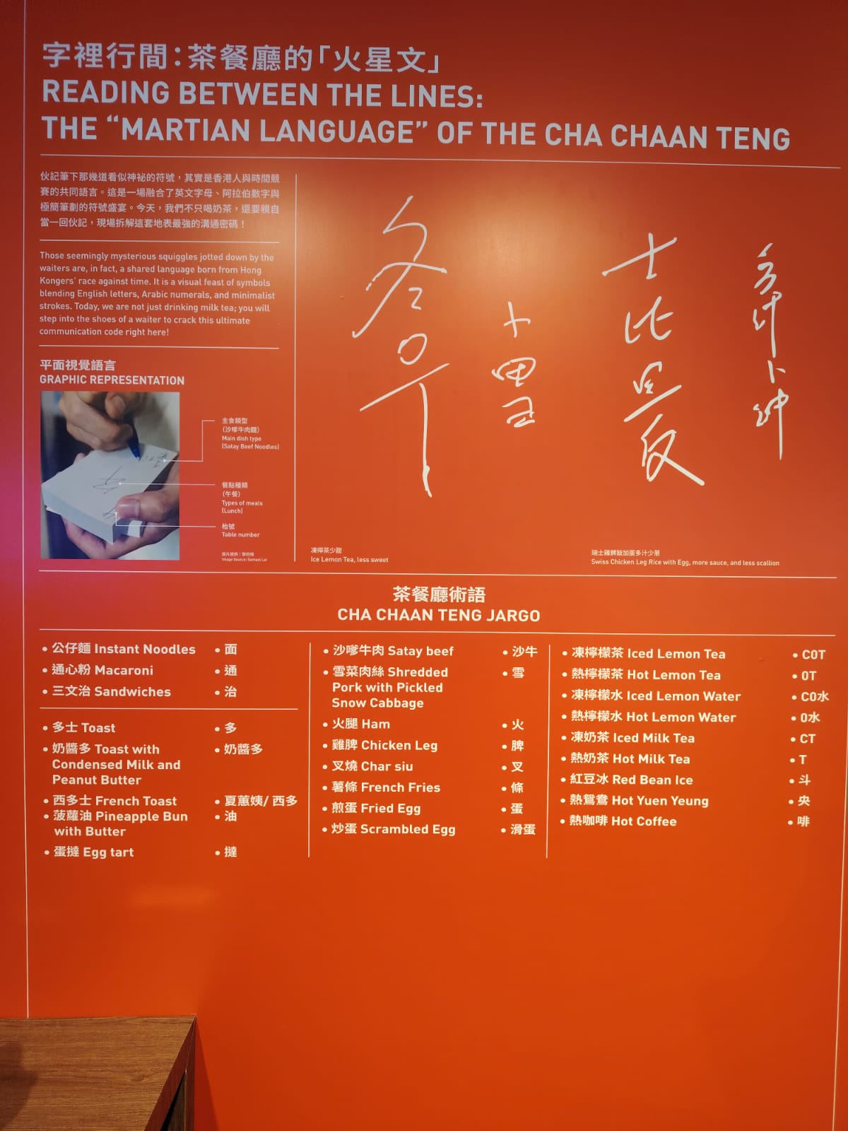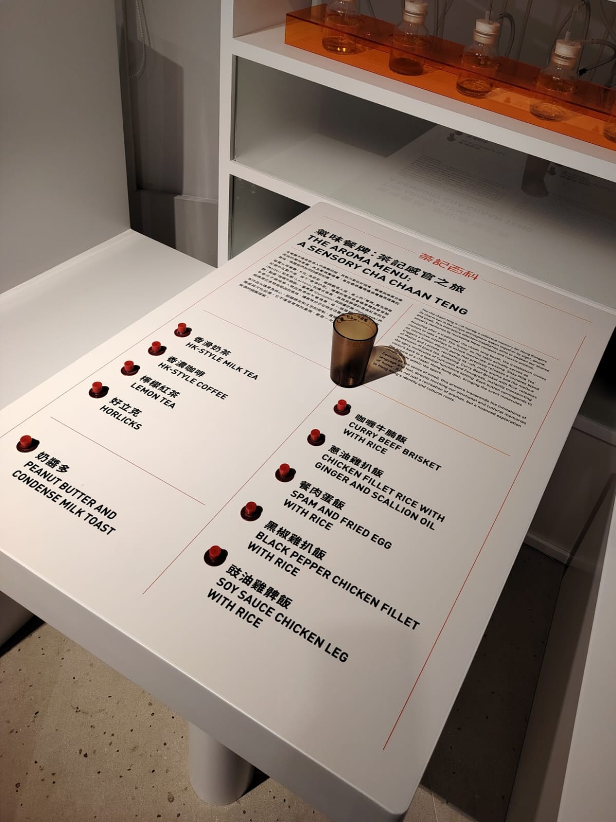 展覽亦特設兩大實境體驗,讓各位親身「聽電話接 order」,拆解香港茶記獨有的「落單」代碼,還可以換上伙記衫,落場體驗一比一「實境水吧」工作動線,製作全球知名的「光速餐」及了解背後的效率奧秘。