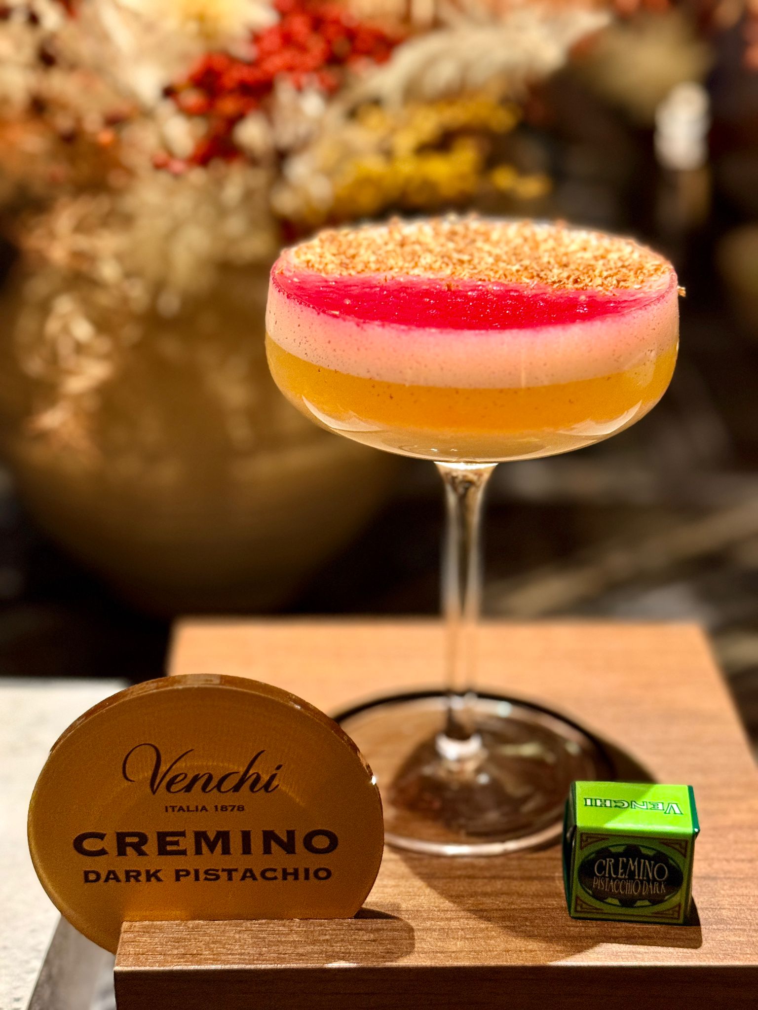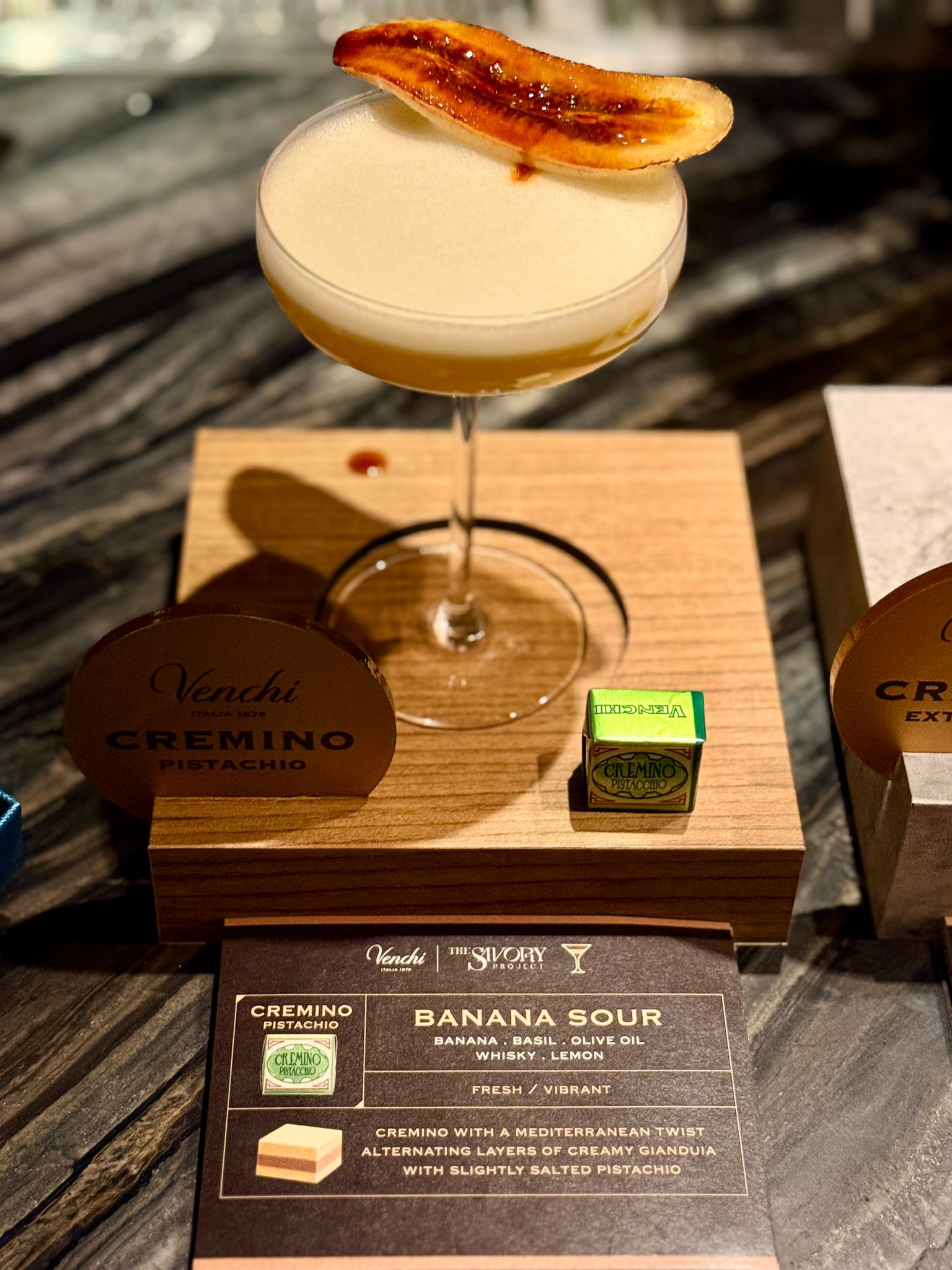 這次 The Savory Project 將以 Cremino 系列 5 款巧克力為靈感——開心果黑巧克力、開心果巧克力、1878 巧克力、黃金焦糖杏仁巧克力及特濃黑巧克力,創作出 5 款全新的雞尾酒,每款雞尾酒都會配搭相應的 Cremino 巧克力,凸顯其獨特的三層和諧滋味。