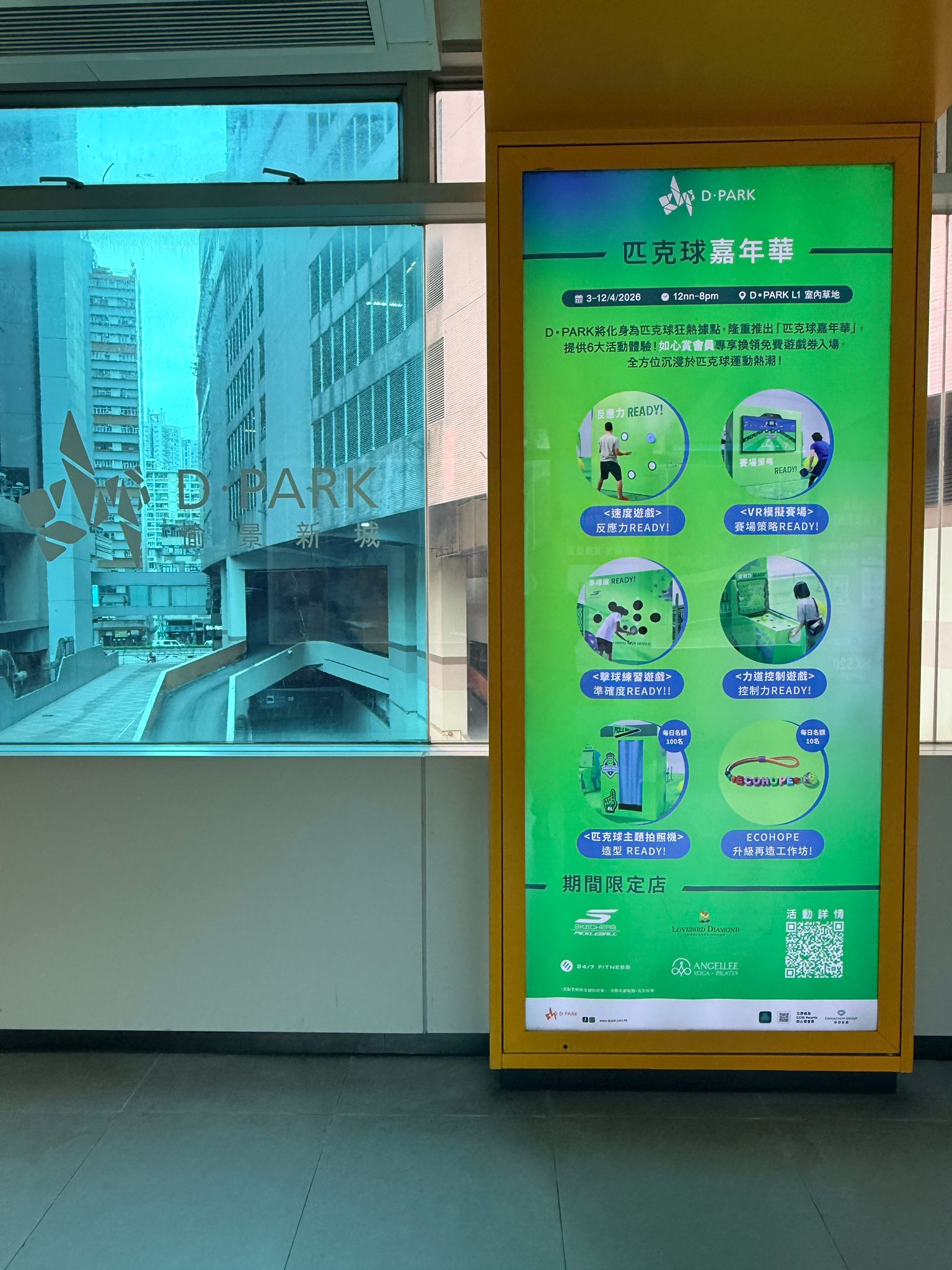 D‧PARK 將於比賽完結後於中庭增加兩個標準匹克球場,屆時商場將提供合共四個匹克球場,進一步鼓勵市民建立恆常而健康的生活習慣。