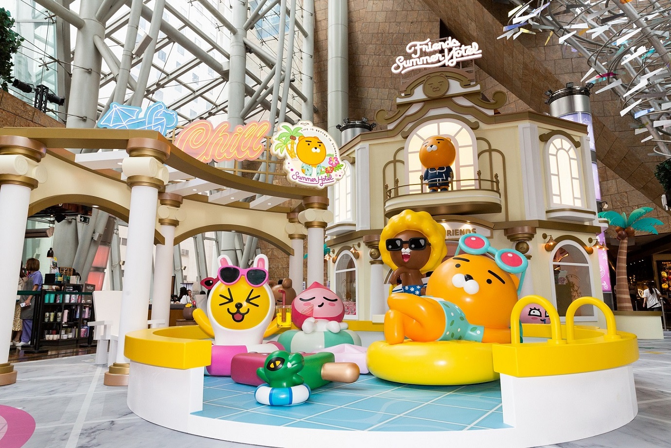 韓國國民卡通人物KAKAO FRIENDS的「FRIENDS SUMMER HOTEL」由即日起至9月1日,在朗豪坊4樓通天廣場隆重開幕,由KAKAO FRIENDS親自「營運」,8位主角包括Ryan、Apeach、Muzi、Con、Neo、Frodo、Tube及Jay-G,時而化身星級酒店職員為你效勞,時而按捺不住盛夏渡假心情,換上泳衣沙灘裝,與眾同樂。