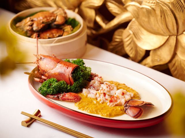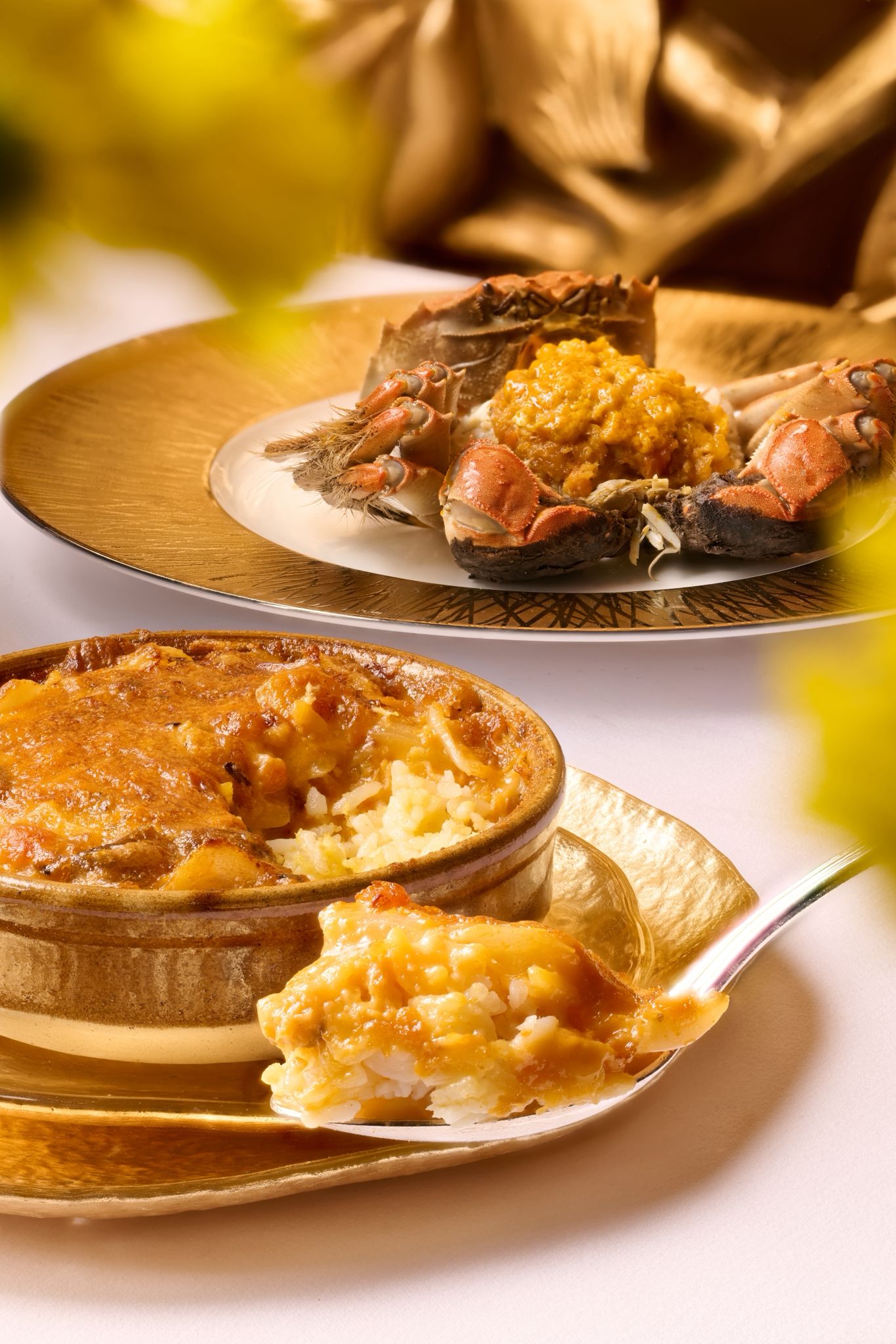 蟹粉乳酪蒸波士頓龍蝦,原隻波士頓龍蝦與以高湯、鮮奶、蛋白混合而成的中式乳酪一起蒸,然後加上蟹粉。想要奢華一點,蟹粉琵琶燕是不二之選,採用頂級官燕、新鮮大閘蟹蟹肉、蛋白做成琵琶的優美形態,蛋白清香中滲透蟹肉鮮甜,再配以生拆蟹粉,充滿層次口感。
