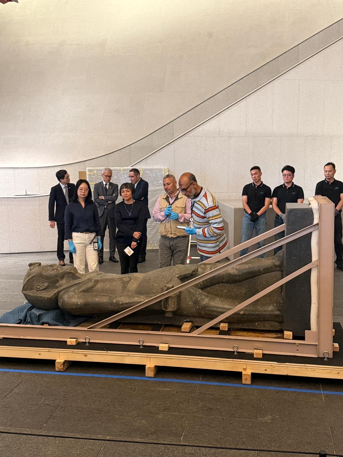 香港故宮文化博物館於博物館中庭舉行文物開箱儀式,其重磅特別展覽「古埃及文明大展——埃及博物館珍藏」首批三座重要巨像率先開箱。展覽將於 2025 年 11 月 20 日至 2026 年 8 月 31 日於博物館展廳9 舉行。