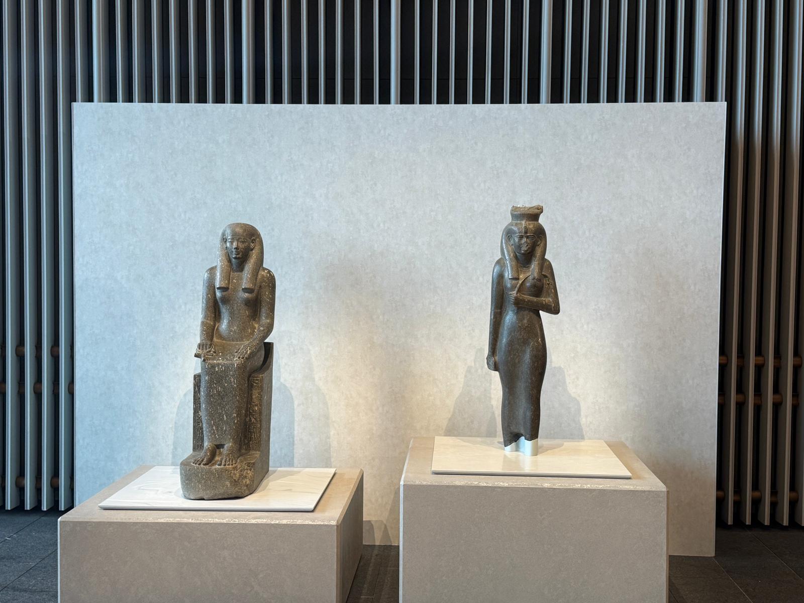 另外兩件巨像阿蒙神妻謝佩努彼特二世邁步像(第 25 王朝,約公元前 747–公元前 656 年)及伊烏尼特坐像(第 18 王朝,約公元前 1550–公元前 1295 年),則展示於博物館二樓中庭。三件重點文物已相繼完成安裝,這是博物館自開館以來首次於主展廳以外的公共空間展示展品,亦象徵本次展覽正式進入開幕前的最後倒數。由10 月 29 日起,觀眾可於館內近距離欣賞這三件瑰寶,感受其宏偉規模、精湛工藝與深厚文化意涵。