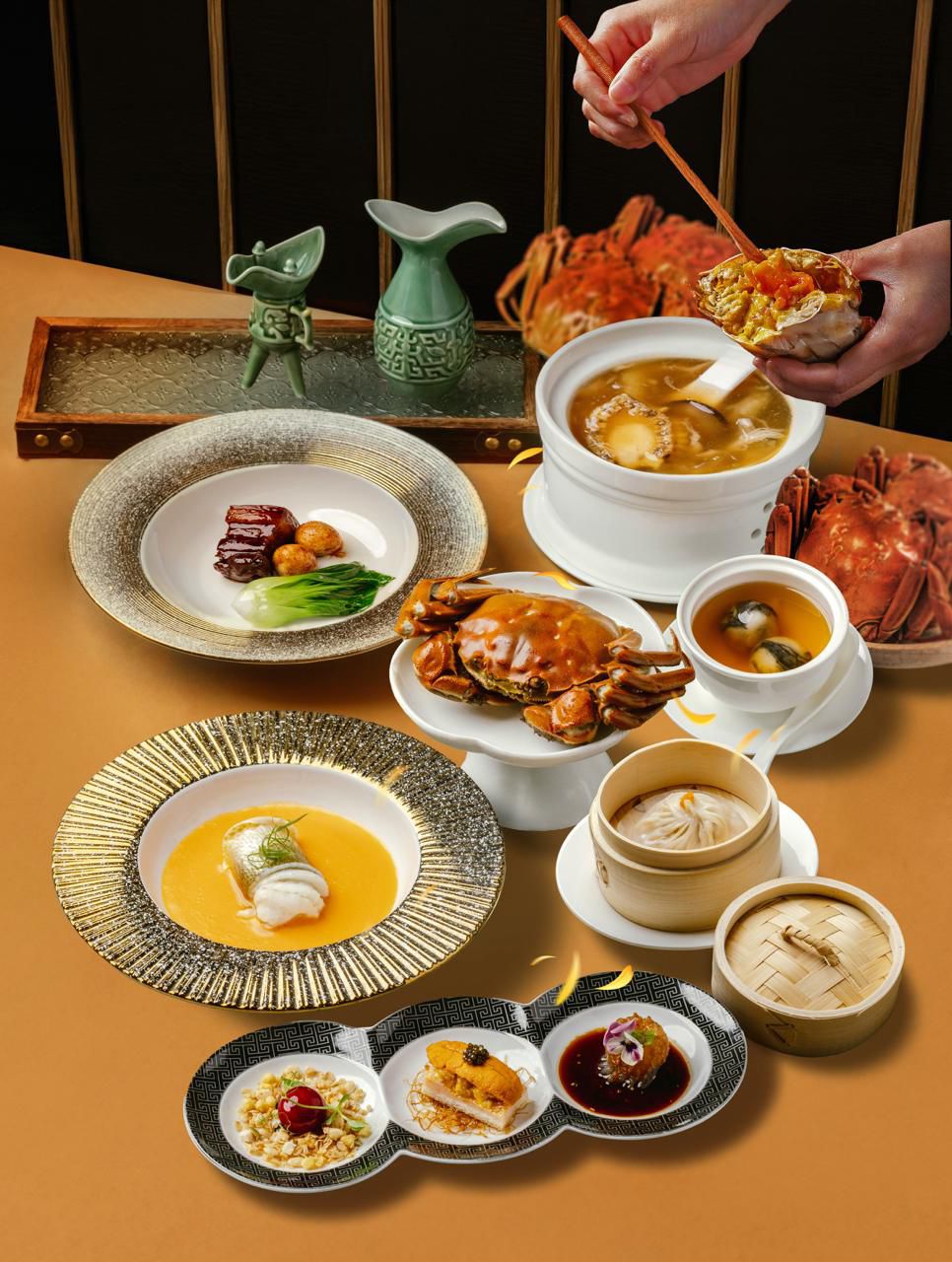 主廚以巧思匠藝演繹多款蟹粉佳餚,套餐獨享湯鮮魚嫩的灌湯蟹粉小黃魚,以及今年全新推出清雅芬芳的桂花蟹粉乾燒翅、精緻創新的魚子醬蟹粉魚翅春卷、層次豐富的魚子醬蟹粉海膽蝦多士與鑊氣米香的蟹粉河蝦仁石鍋飯,盡現秋蟹之鮮美。