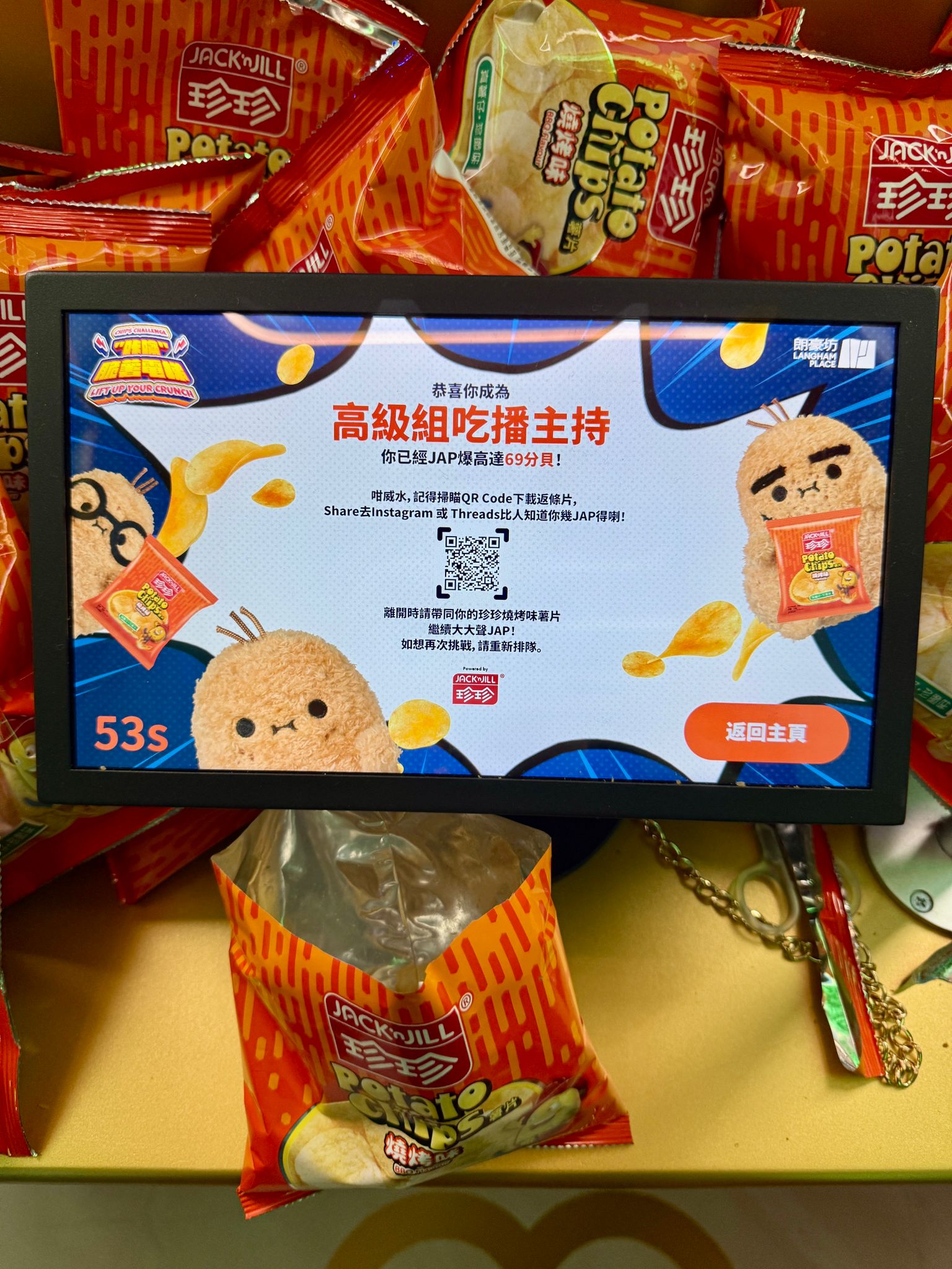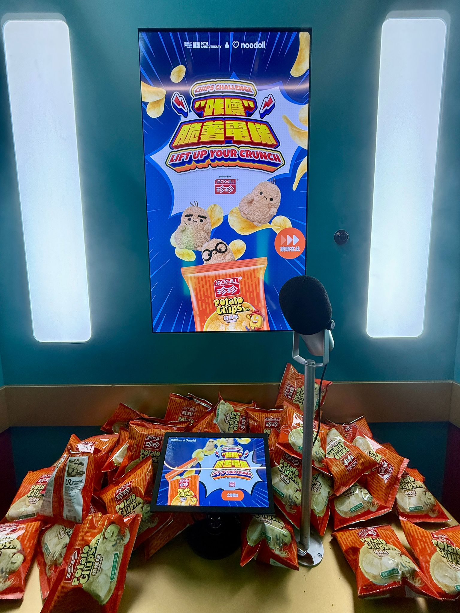 朗豪坊 x 珍珍薯片「咔嚓」脆薯電梯,走進電梯,挑戰正式開始,現場設有錄影及分貝測試裝置,完整捕捉JAP薯片的ASMR「咔嚓」瞬間,睇下你有幾「脆」!