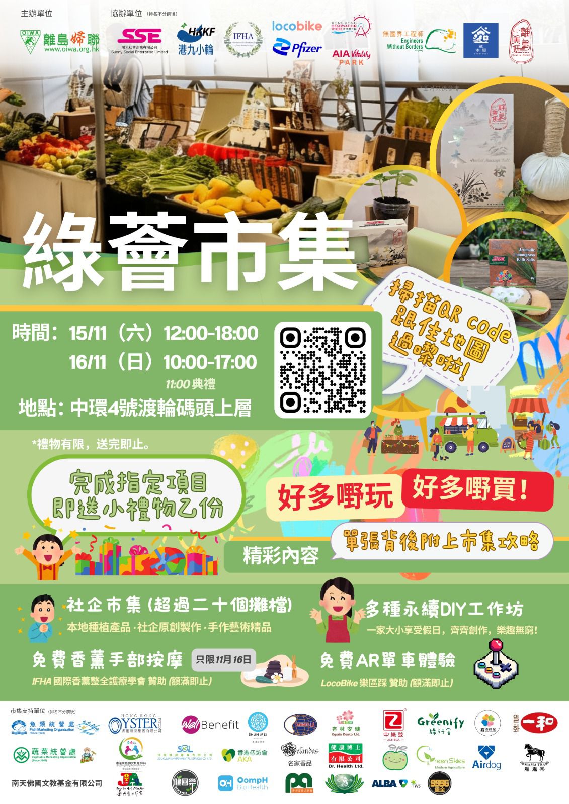 免費香薰手部按摩(僅限11月16日):由國際香薰整全護療學會(IFHA)的專業人士提供,讓參加者享受片刻的放鬆與舒適。