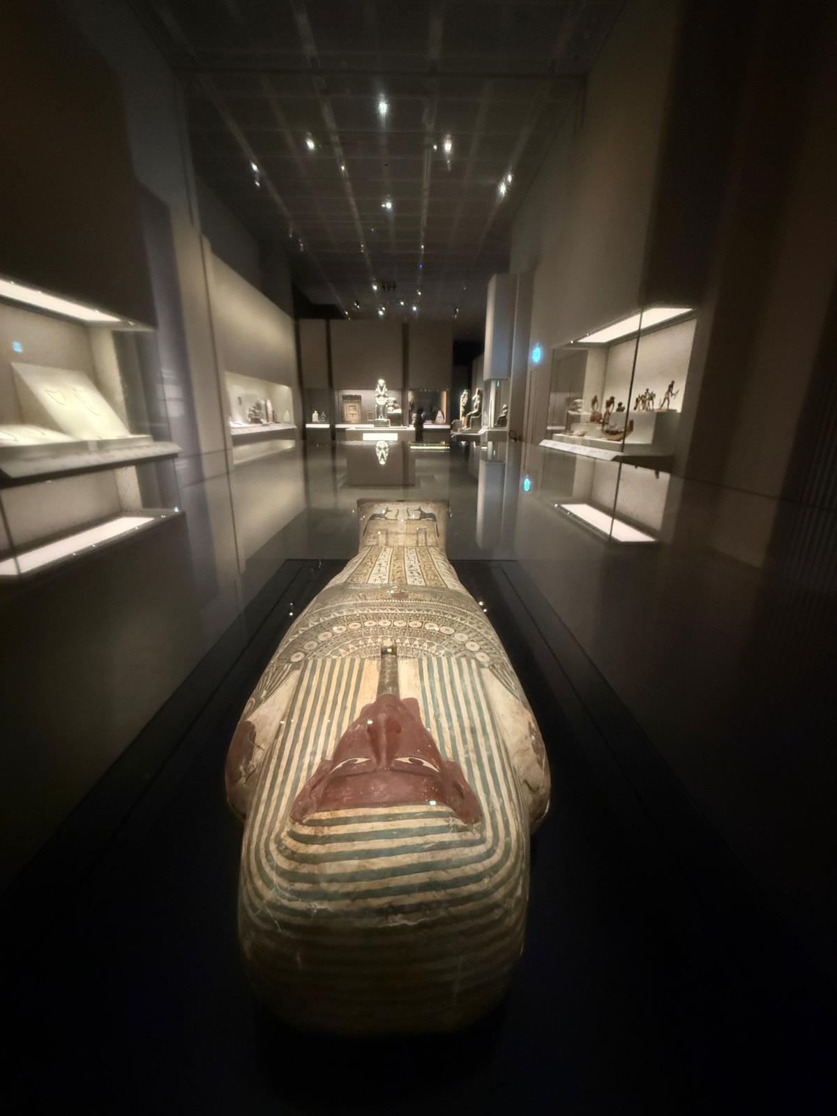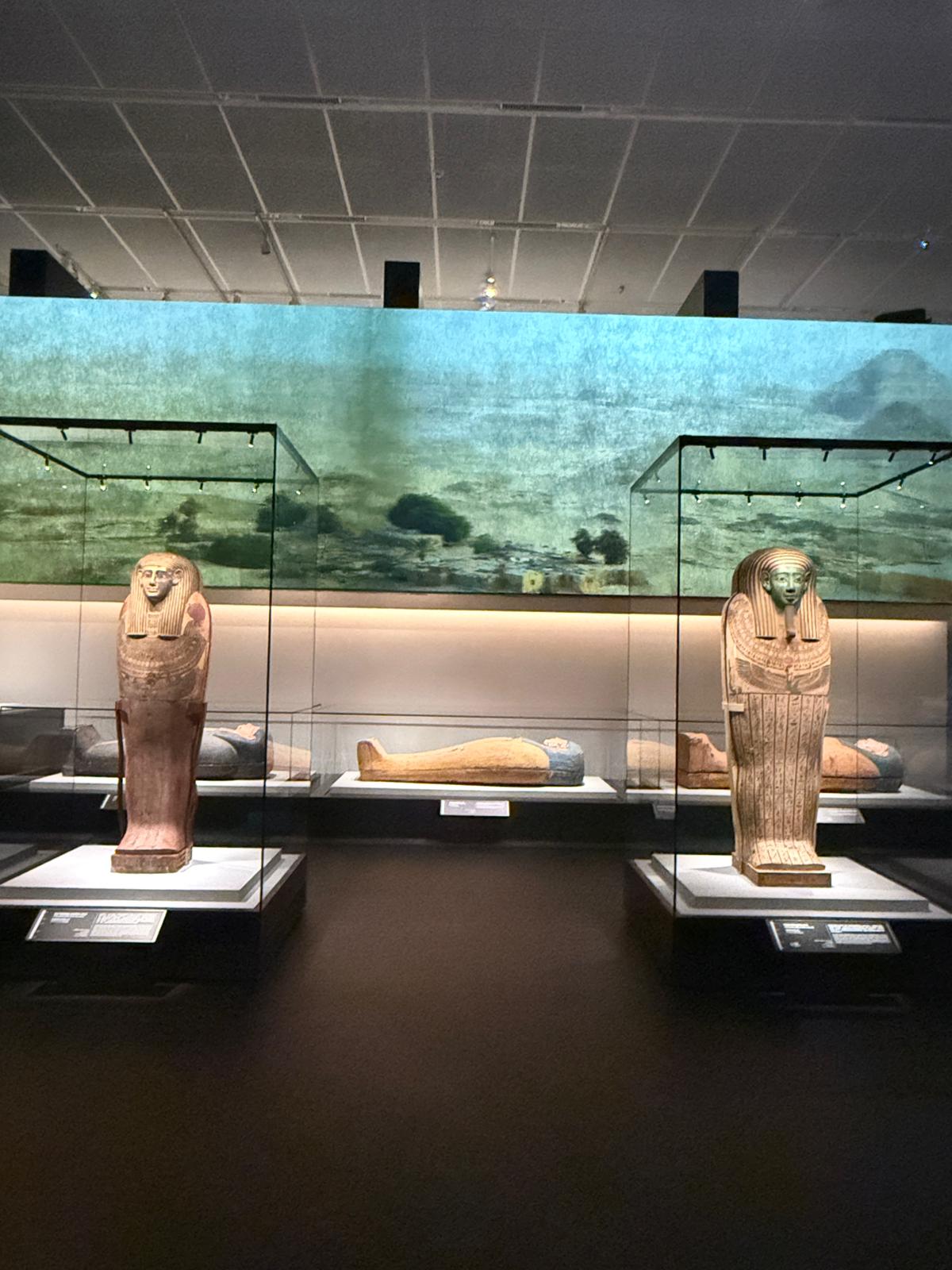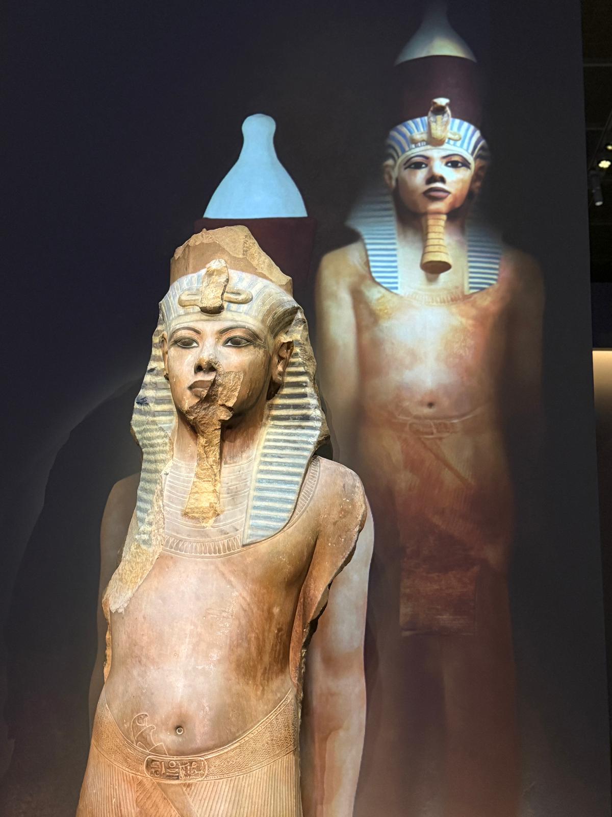 博物館亦於展廳外的公共空間佇立三座大型石像——法老麥倫普塔邁步像、公主阿蒙神妻謝佩努彼特二世邁步像及女神伊烏尼特坐像——以迎接訪客。